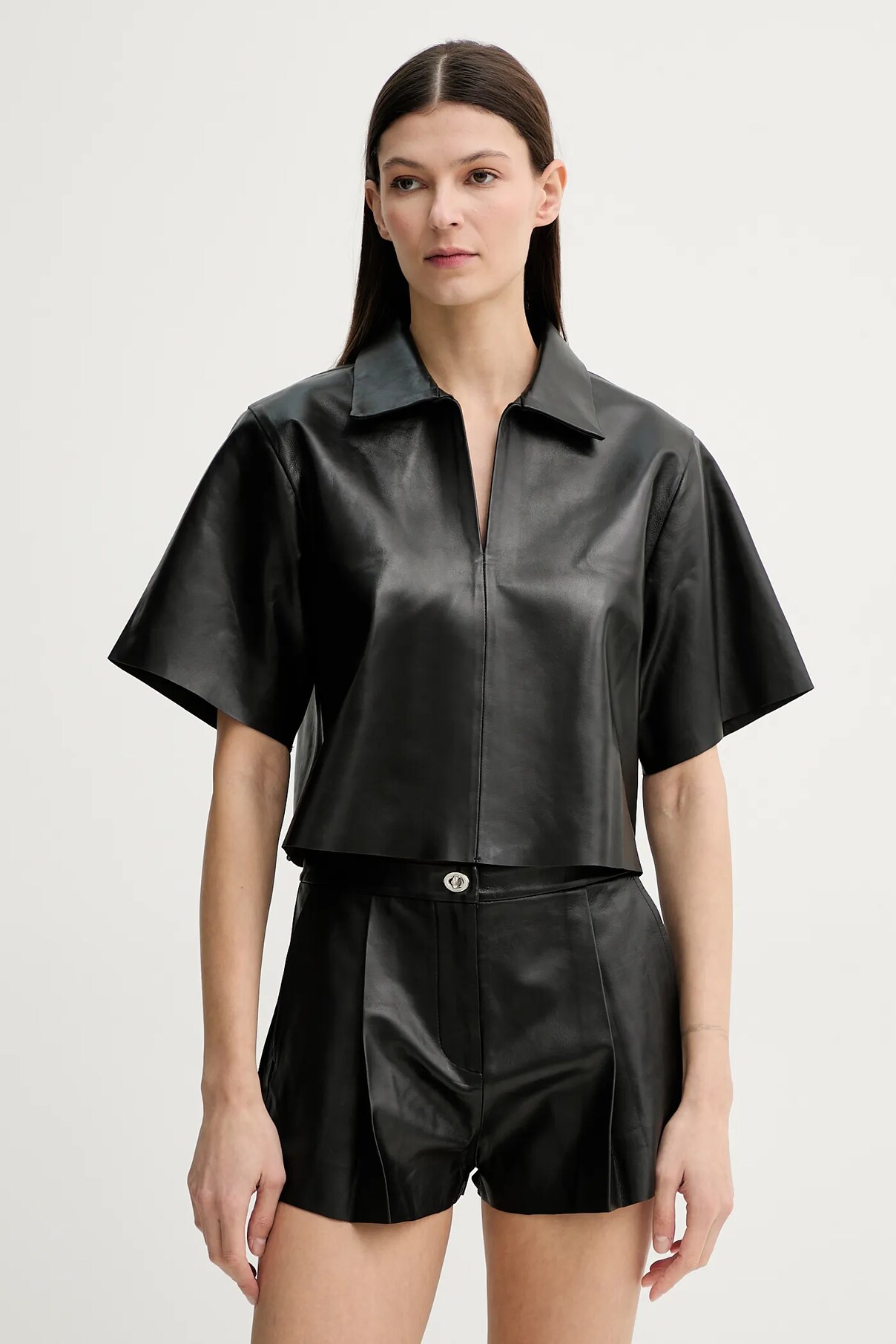 Блузка из коллекции Stand Studio из натуральной кожи. Кожаный материал прочный и влагостойкий.