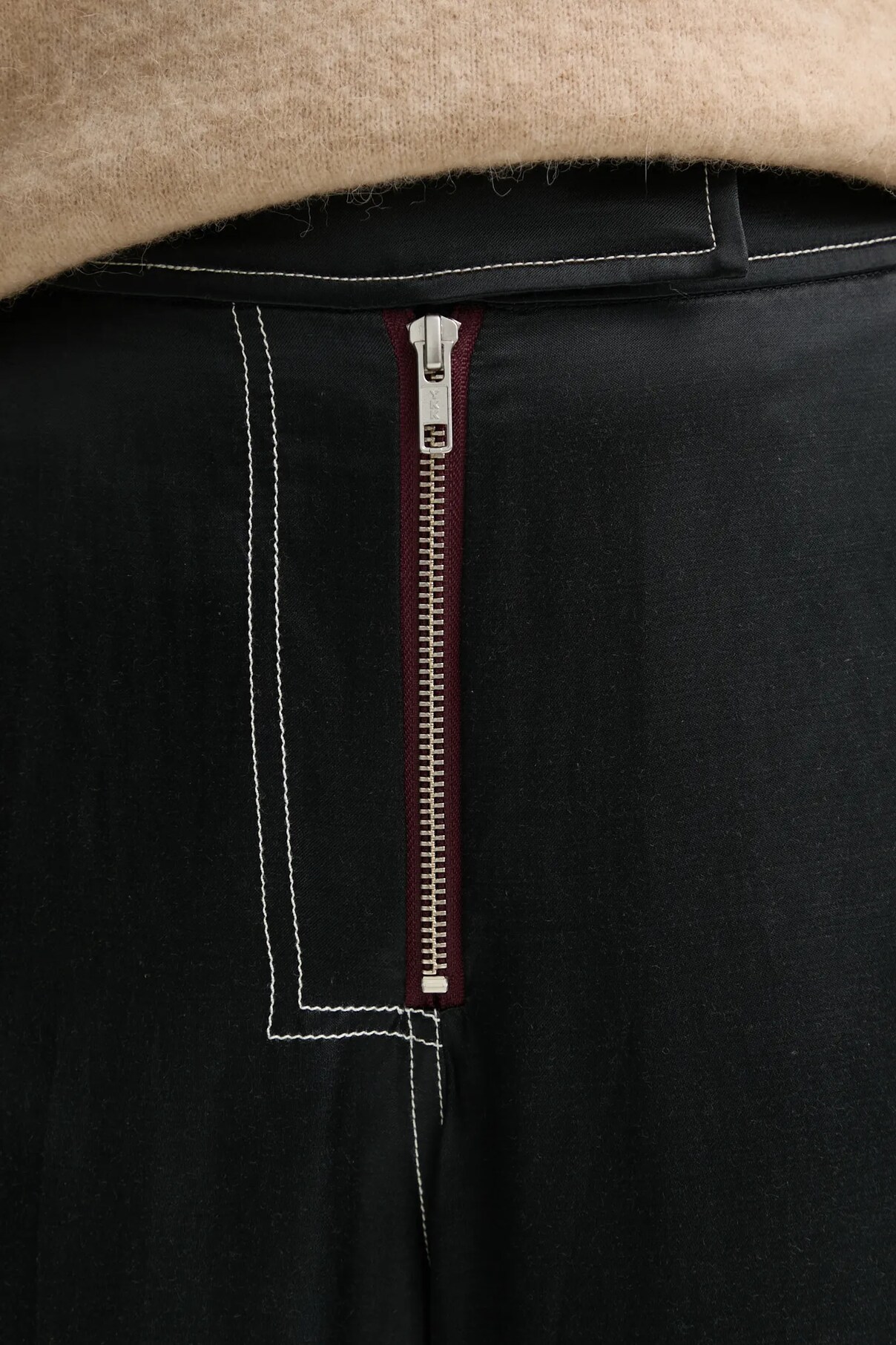 - Модель с высокой талией, застегивается на пуговицы и молнию.