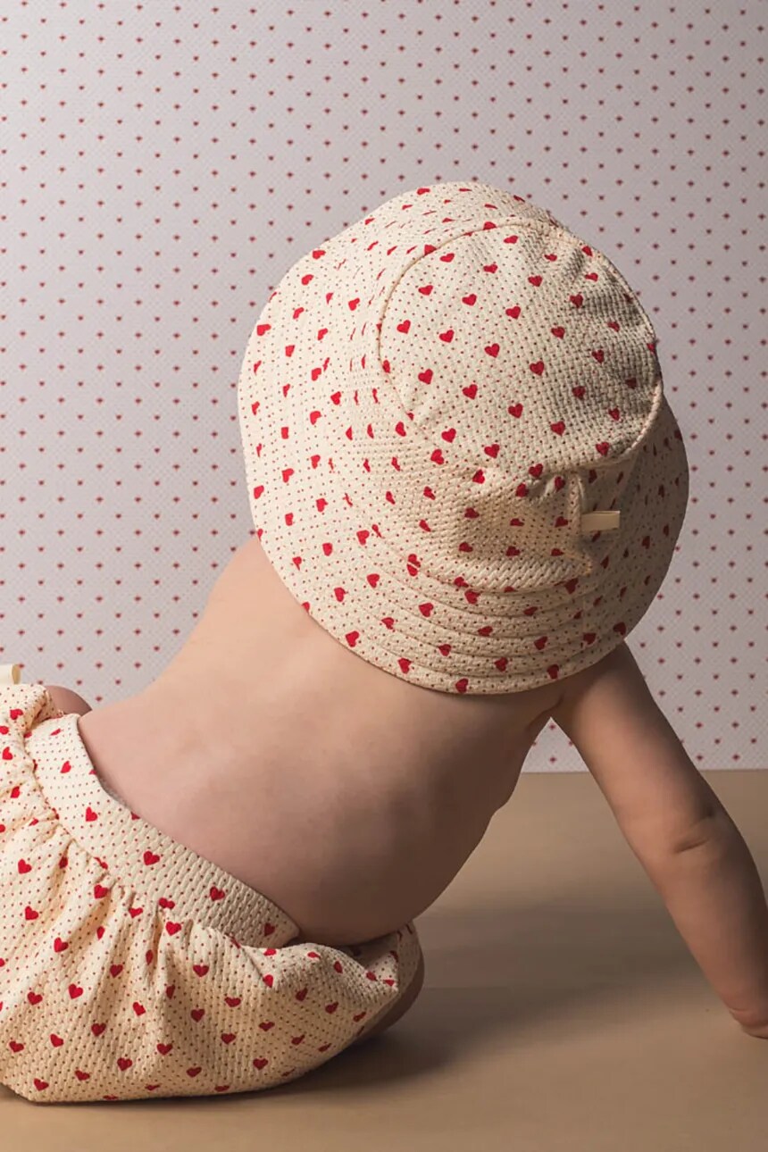 Детская шапка из коллекции «Это моё». Модель с узкими полями, выполненная из узорчатого материала.