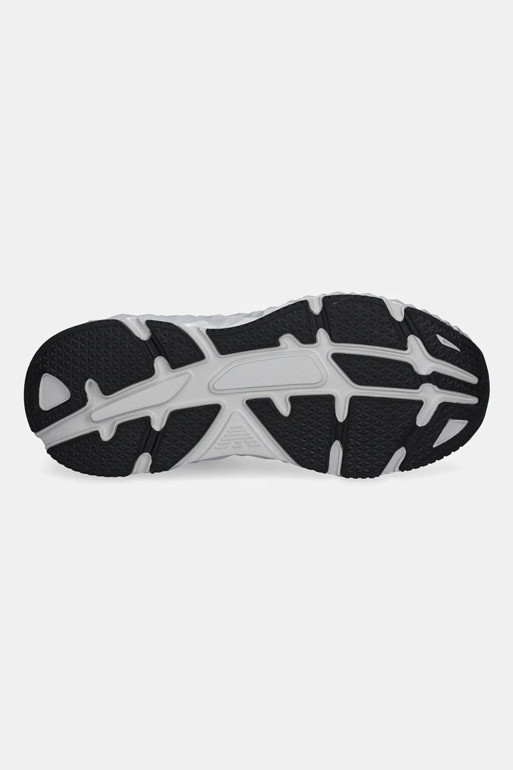 Кроссовки из коллекции EA7 Emporio Armani, выполненные из комбинации текстиля и синтетического материала. Модель с резиновой подошвой, прочной и устойчивой к повреждениям.