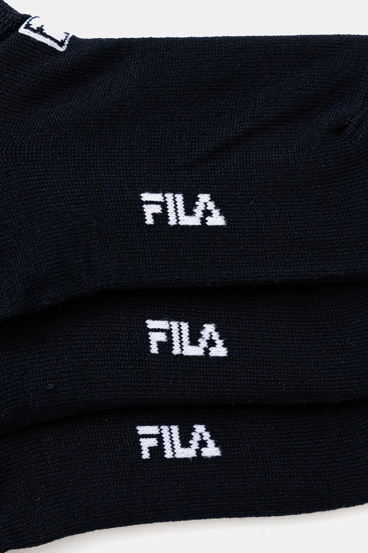 Короткие детские носки из коллекции Fila. Модель изготовлена ​​из гибкого, гладкого материала. Комплект из трех пар.