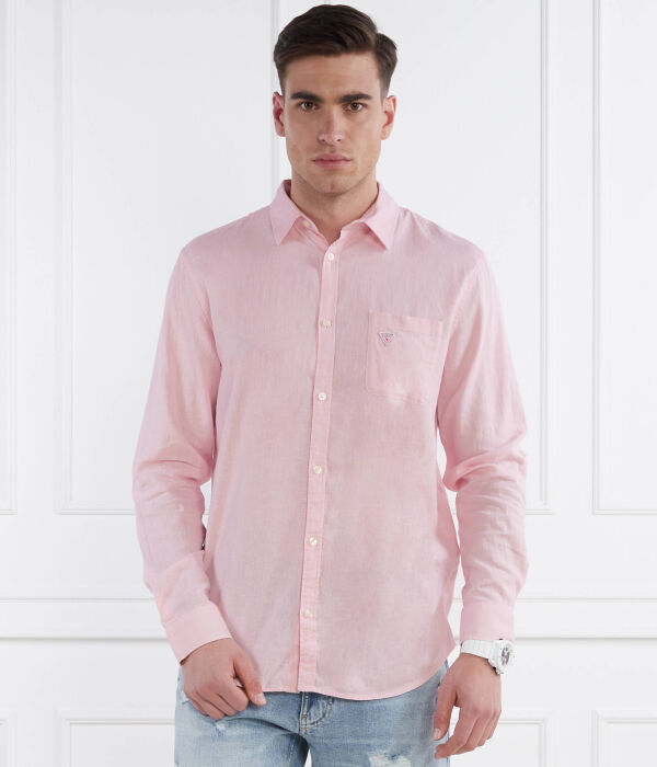 Льняная рубашка Regular fit Guess Underwear, розовый