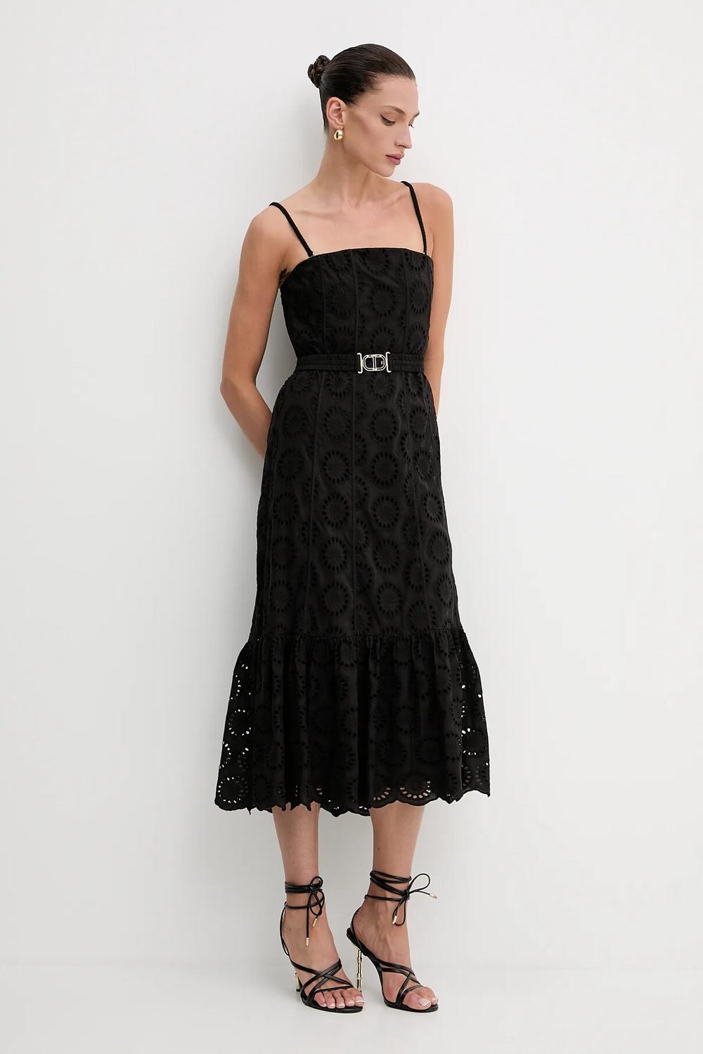 Платье из коллекции Twinset из тонкой, неэластичной ткани. Модель выполнена из исключительно комфортного хлопкового материала.