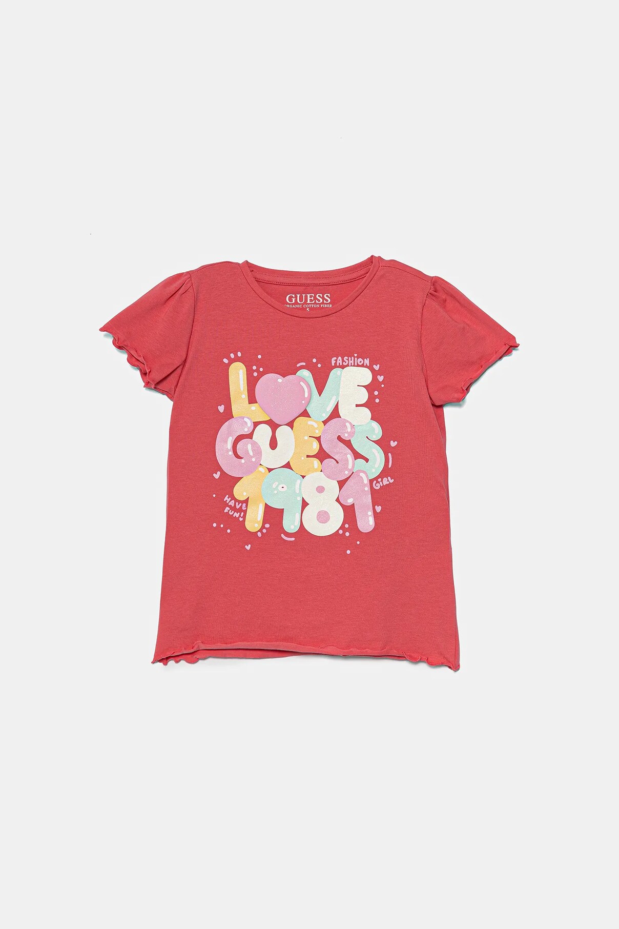 Детская футболка из коллекции Guess из тонкой эластичной ткани. Модель из дышащего материала с высоким содержанием хлопка.