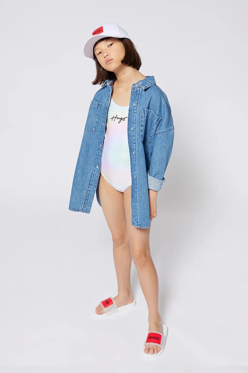 Слитный детский купальник из коллекции HUGO. Модель изготовлена ​​из гибкого материала.