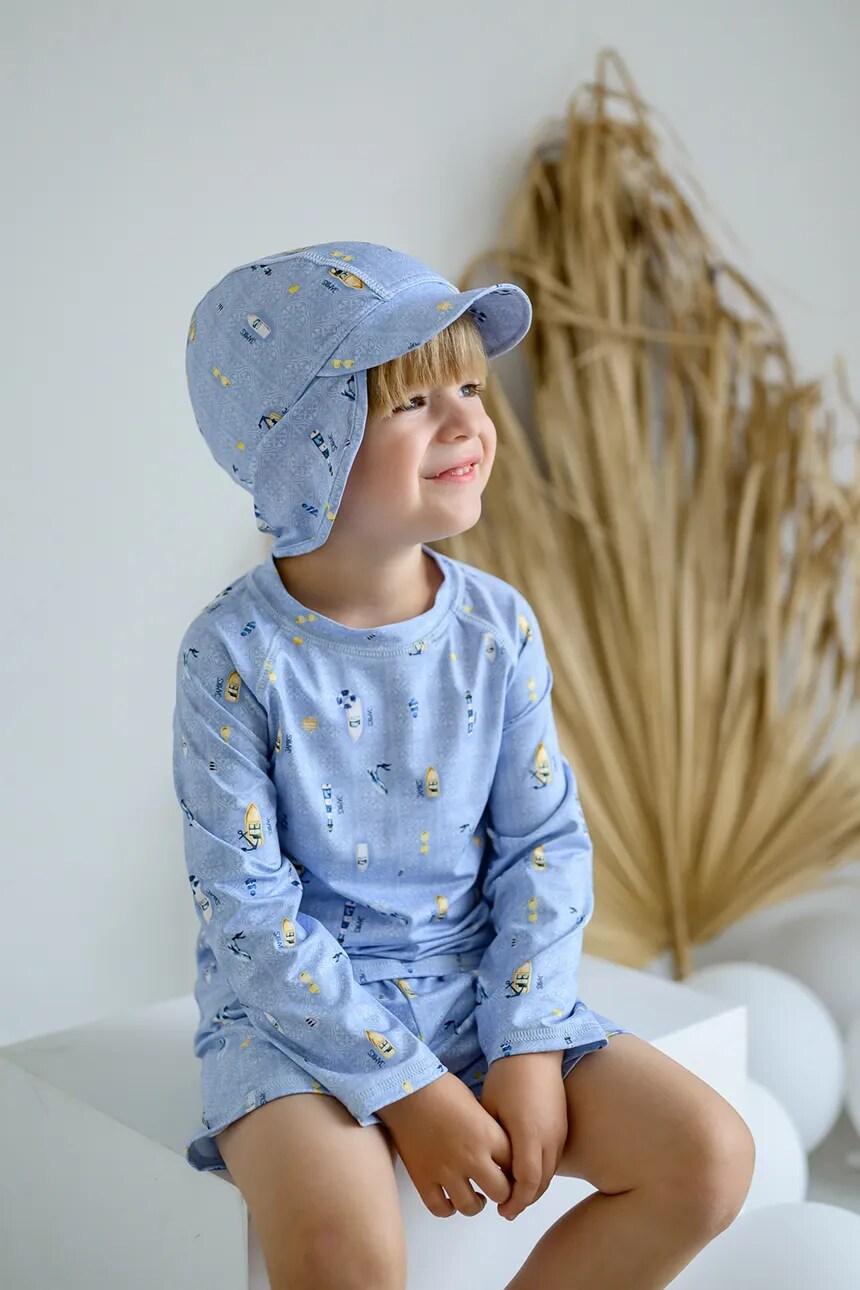 Детская шапка из коллекции Jamiks. Модель выполнена из узорчатого трикотажного полотна. Модель имеет защиту от солнца UPF 50+.