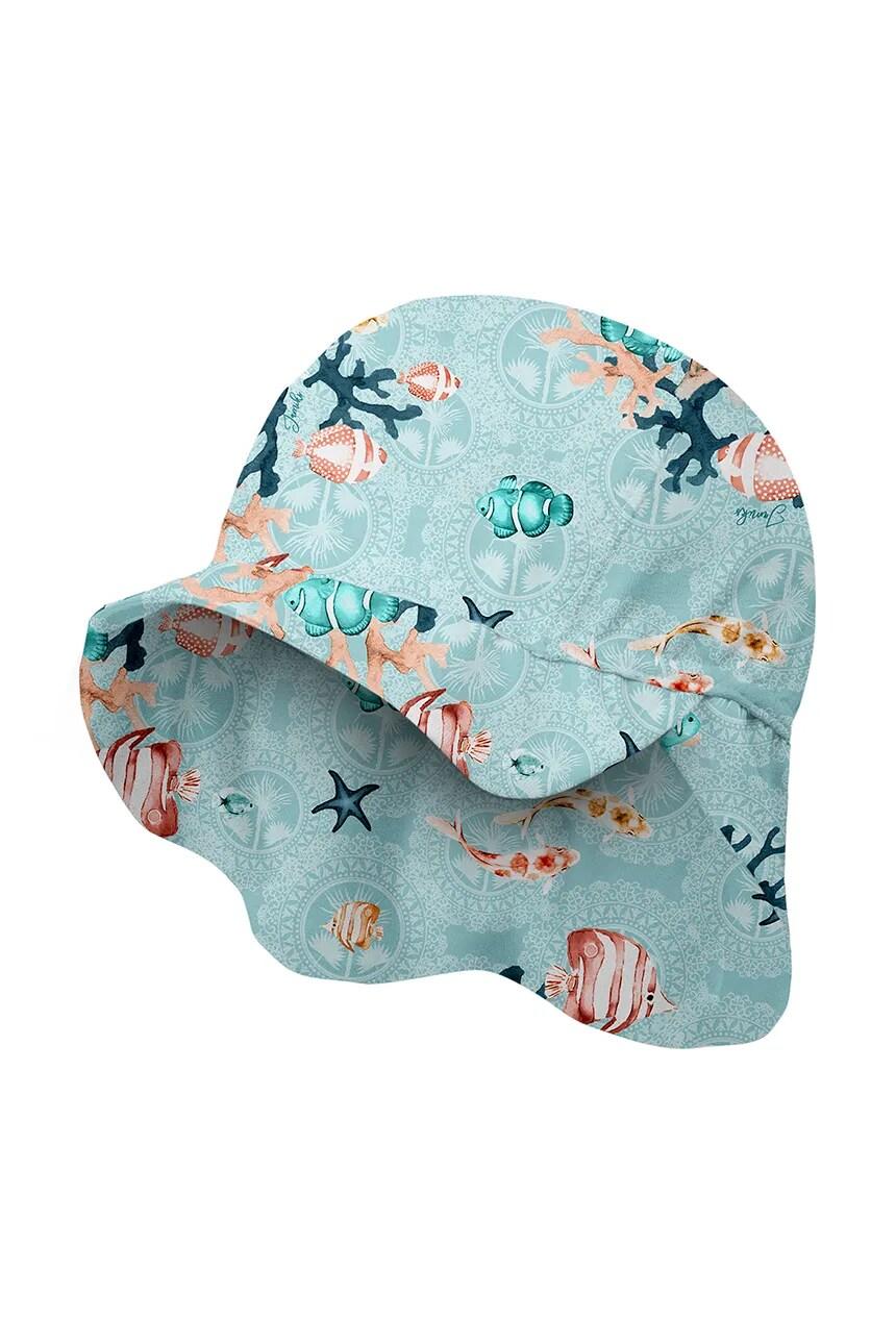 Детская шапка из коллекции Jamiks. Модель выполнена из узорчатого трикотажного полотна. Модель имеет защиту от солнца UPF 50+.