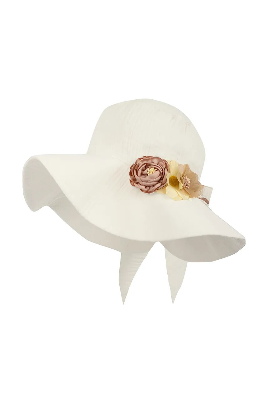 Детская шапка из коллекции Jamiks. Широкополая модель из ткани с аппликацией.
