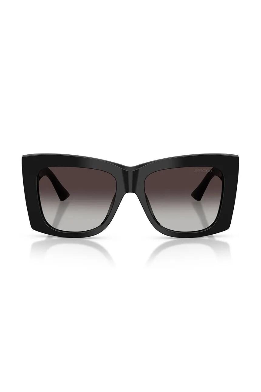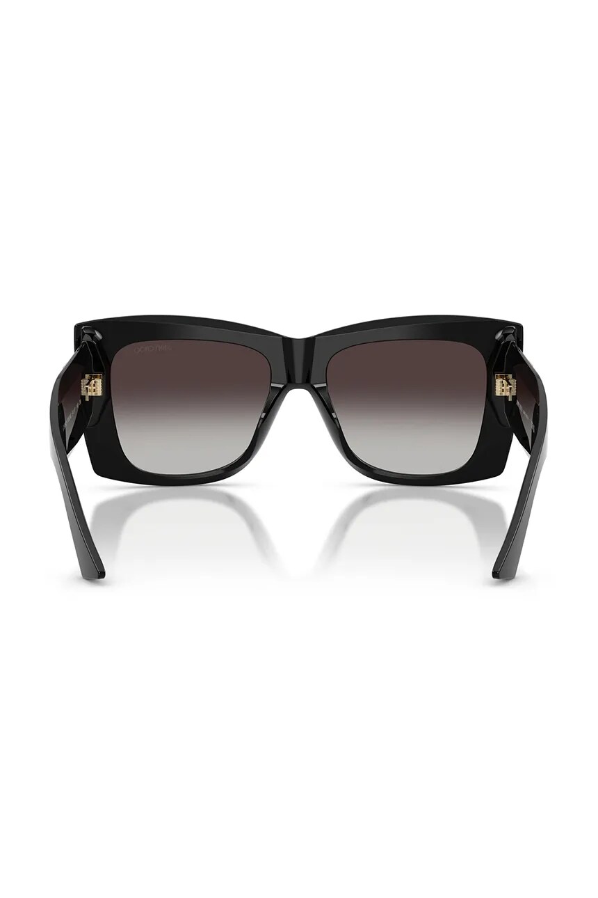 Солнцезащитные очки из коллекции Jimmy Choo. Модель с затемненными линзами и пластиковой оправой. Имеет фильтр UV 400.