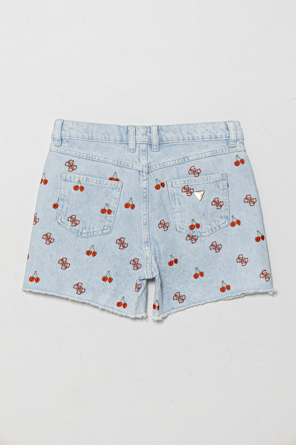 Детские шорты из коллекции Guess из бережно выстиранного денима. Модель из жесткого, сохраняющего форму денима.