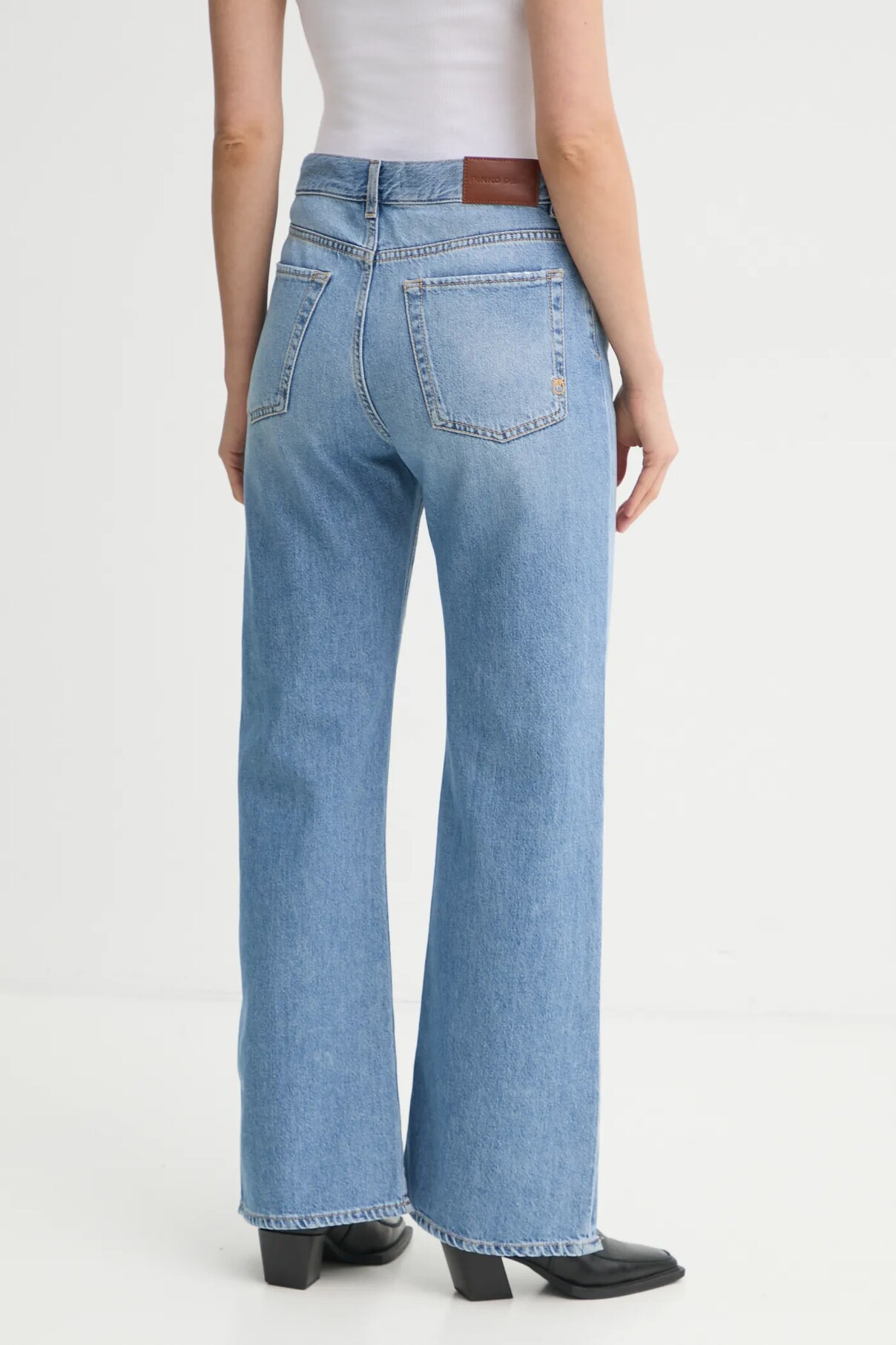 - Джинсы, слегка облегающие бедра. - Модель с высокой талией, застегивается на пуговицы и молнию. - Широкие штанины. - Три накладных кармана спереди. - Два накладных кармана на ягодицах. - Модель с декоративной бахромой. - Ширина талии: 40 см. - Ширина бедер: 52 см. - Высота талии: 31 см. - Ширина штанины внизу: 27 см. - Ширина штанины: 29 см. - Длина штанины по внешнему шву: 108 см. - Размеры указаны для размера: 27.