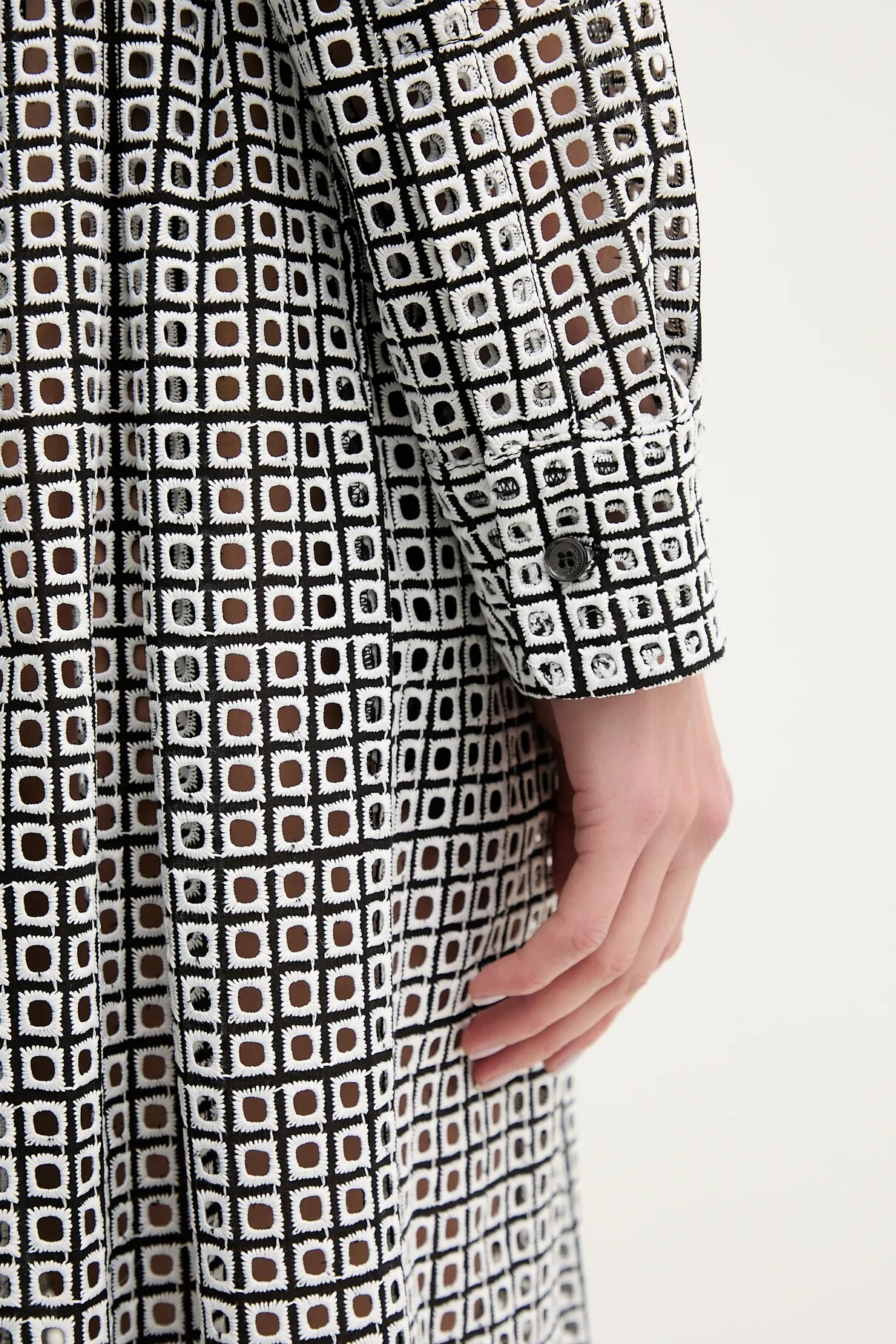 - Расклешенный крой. - Короткая планка с пуговицами обеспечивает легкую вентиляцию и легкость надевания и снятия. - Длинный рукав. - Манжеты на пуговицах. - Длина: 123 см. - Ширина под мышками: 42 см. - Размеры указаны для размера: 36.
