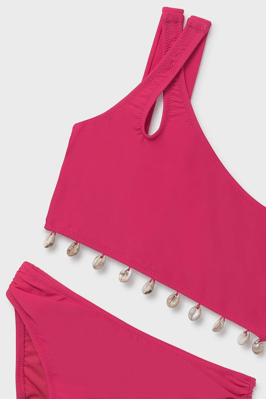 Раздельный детский купальник из коллекции Mayoral. Модель выполнена из материала с декоративными вставками.