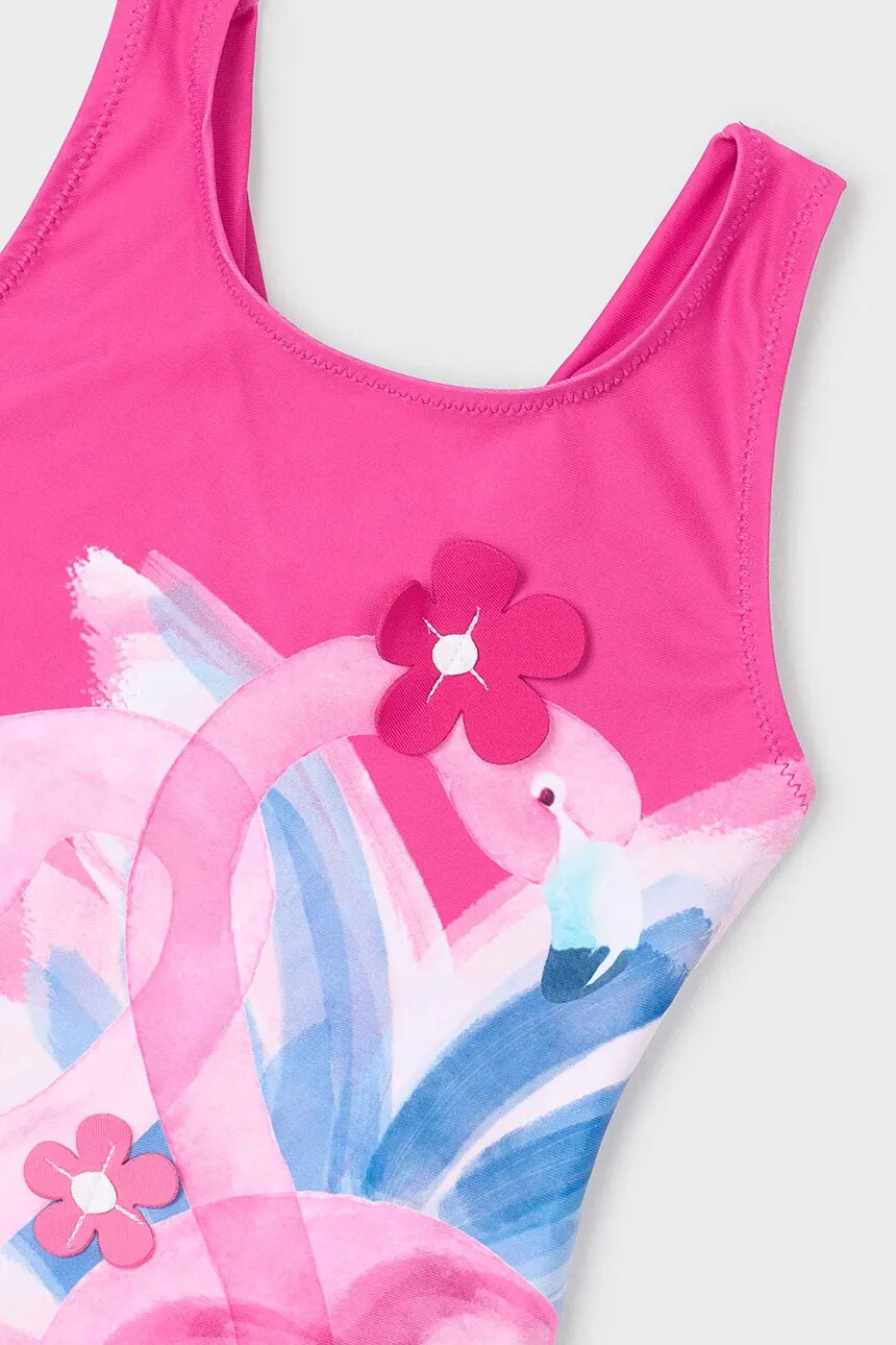 Слитный детский купальник из коллекции Mayoral. Модель выполнена из эластичного трикотажного полотна, облегающего тело.