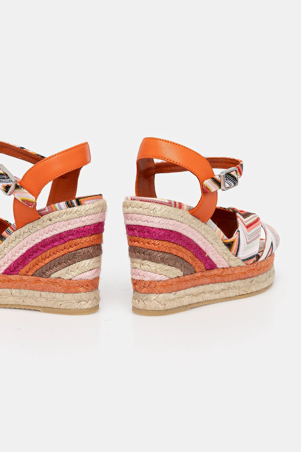 Босоножки из коллекции Missoni из текстильного материала. Модель с кожаной стелькой, которая комфортна для стопы и предотвращает натирание, потертости и появление неприятного запаха.