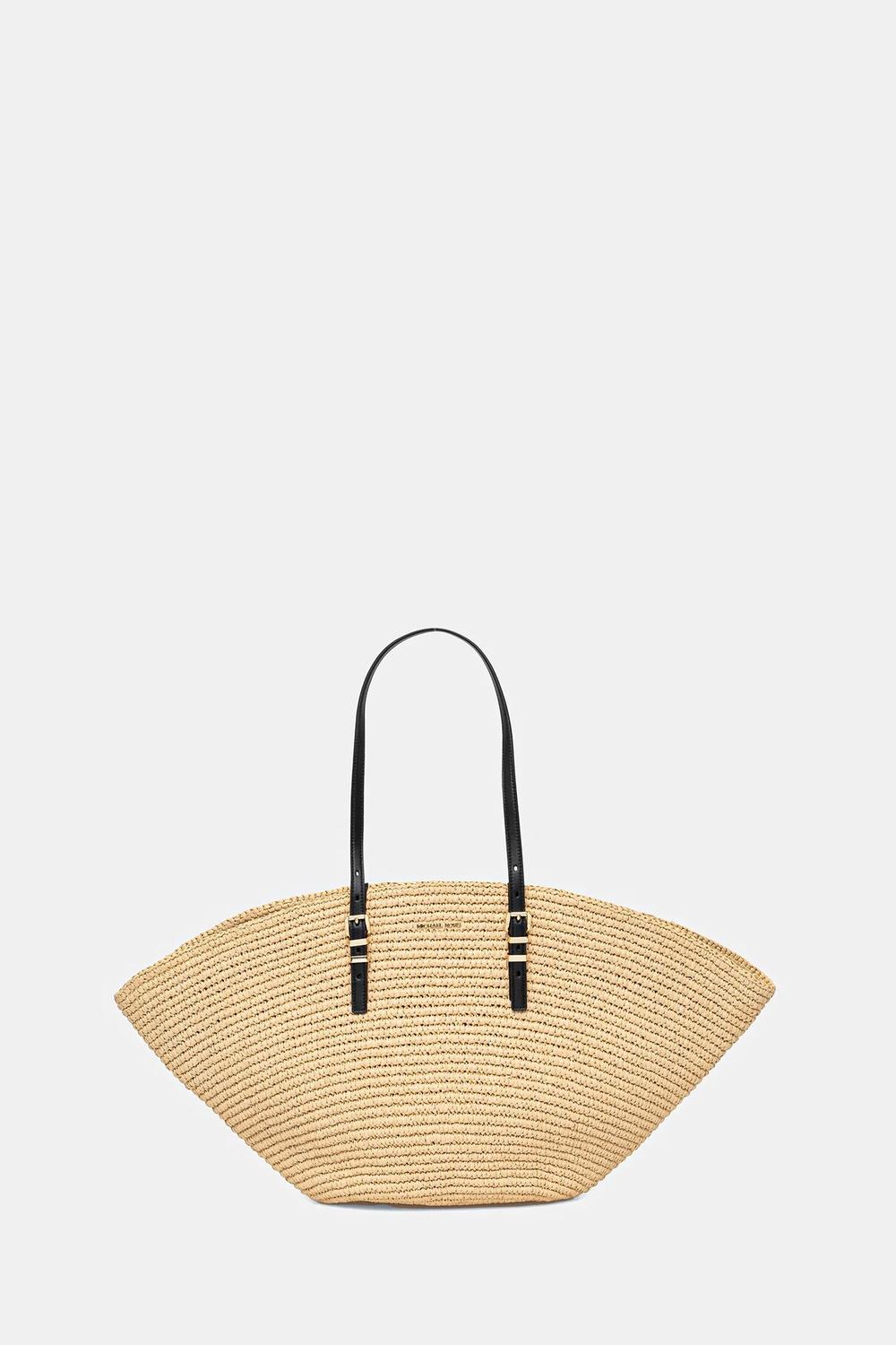 Большая сумка-шоппер из коллекции MICHAEL Michael Kors. Расстегнутый, из плетеного материала.