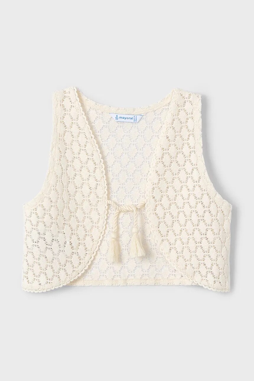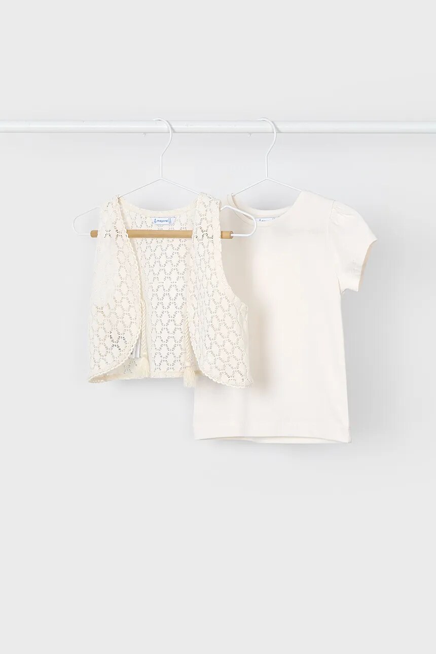 Детская футболка из коллекции Mayoral. Модель выполнена из тонкого, слегка эластичного трикотажа. В комплект модели входит болеро.
