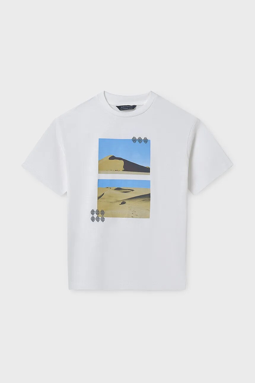 Детская футболка из коллекции Mayoral. Модель выполнена из тонкого, слегка эластичного трикотажа. Хлопок, приятный на ощупь материал.