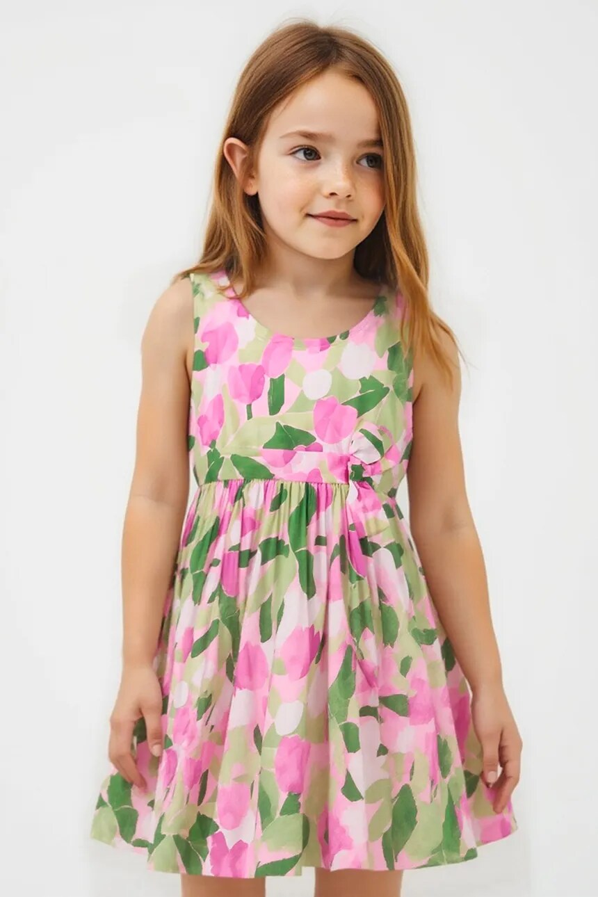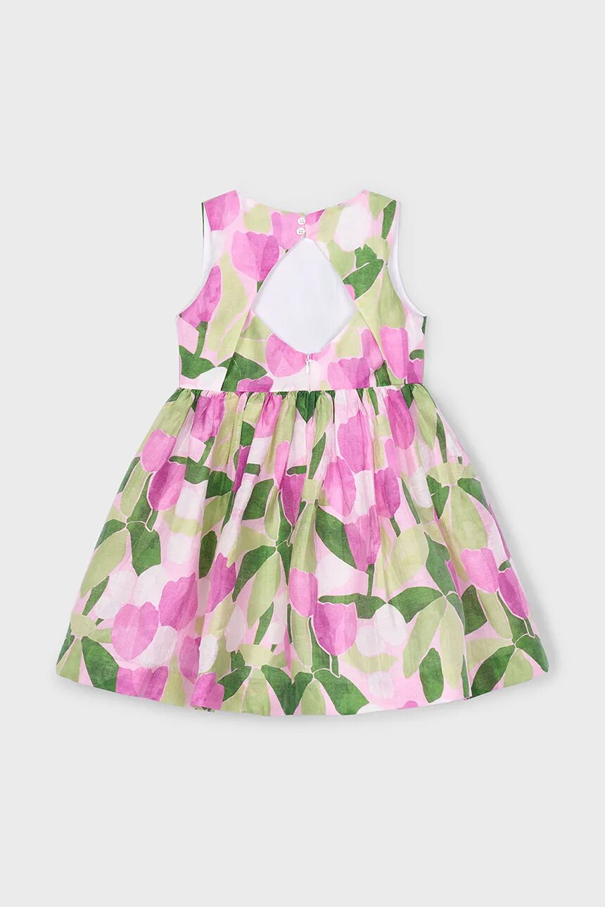 Детское платье из коллекции Mayoral. Расклешенная модель из узорчатого материала.