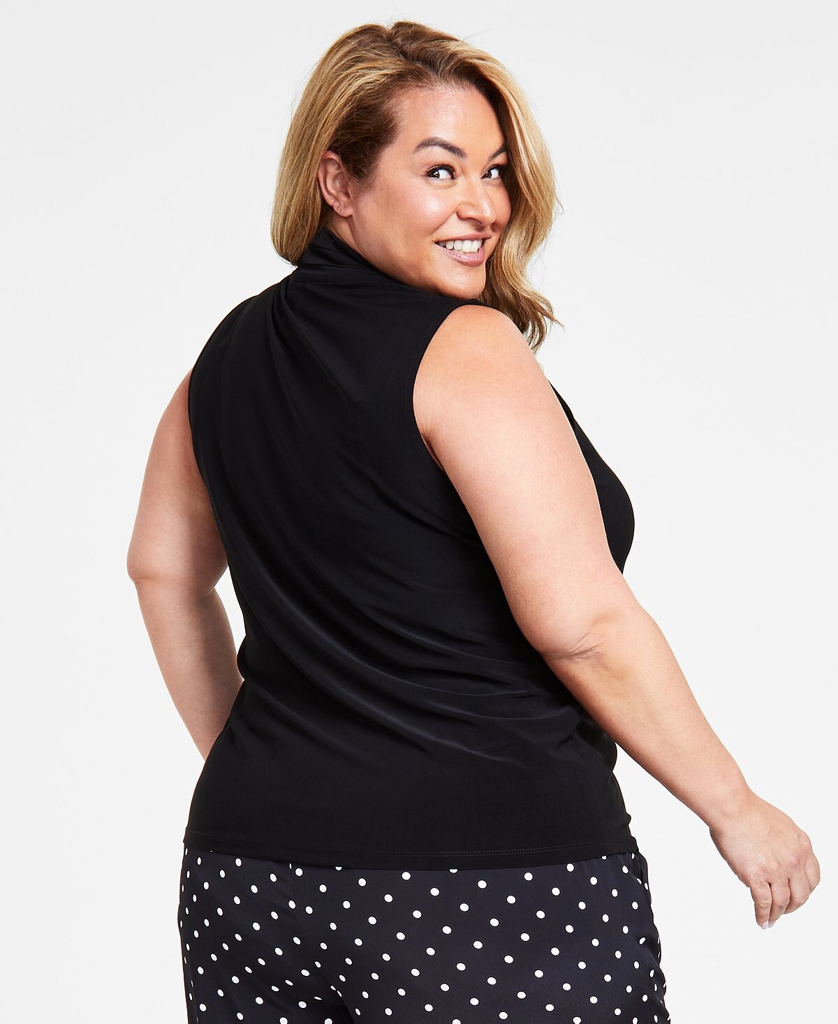 Топ без рукавов больших размеров от Anne Klein с плиссированным вырезом, создающим стиль для работы и выходных.