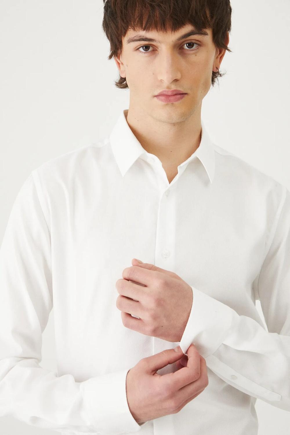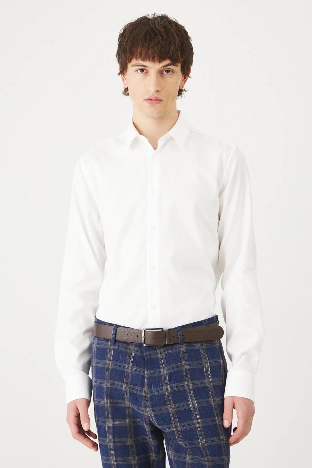 - Приталенная рубашка облегает тело, естественно подчеркивая силуэт и обеспечивая комфорт.