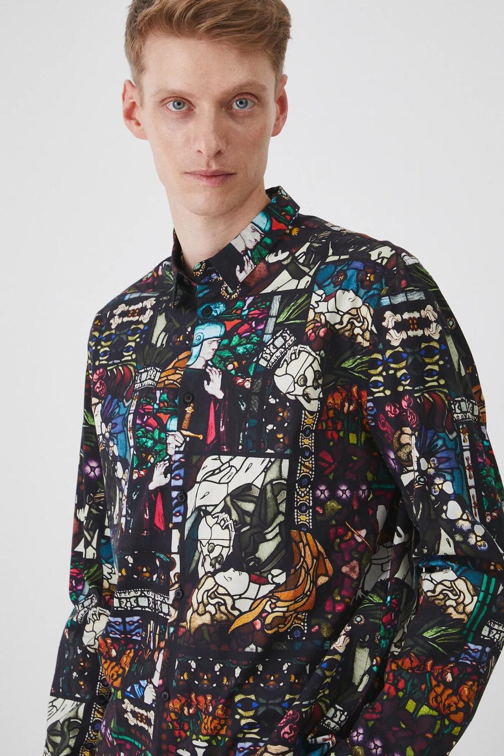 - Рубашка прямого кроя мягко облегает силуэт, но не подчеркивает его, обеспечивая свободу движений.