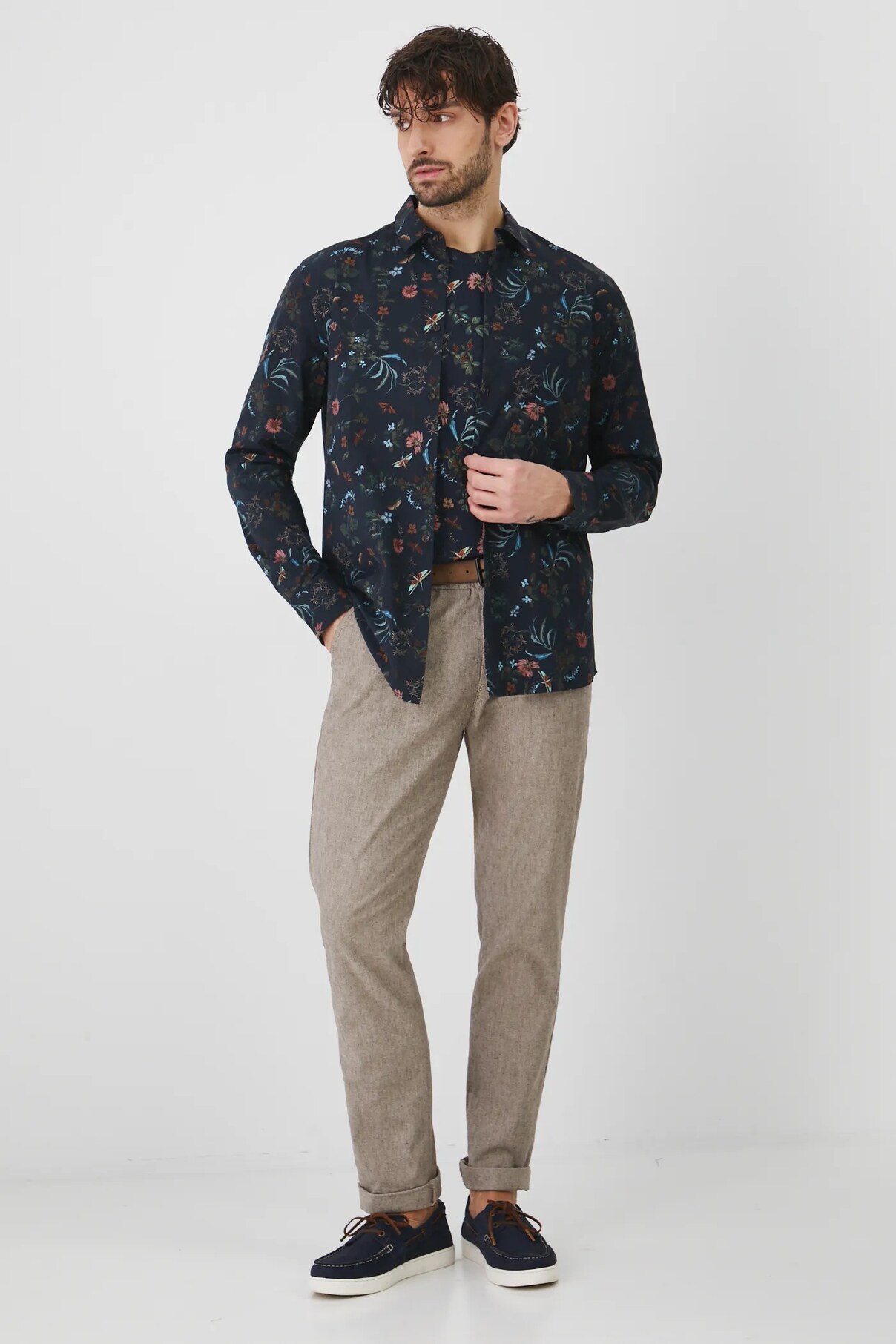 - Рубашка прямого кроя мягко облегает силуэт, но не подчеркивает его, обеспечивая свободу движений.