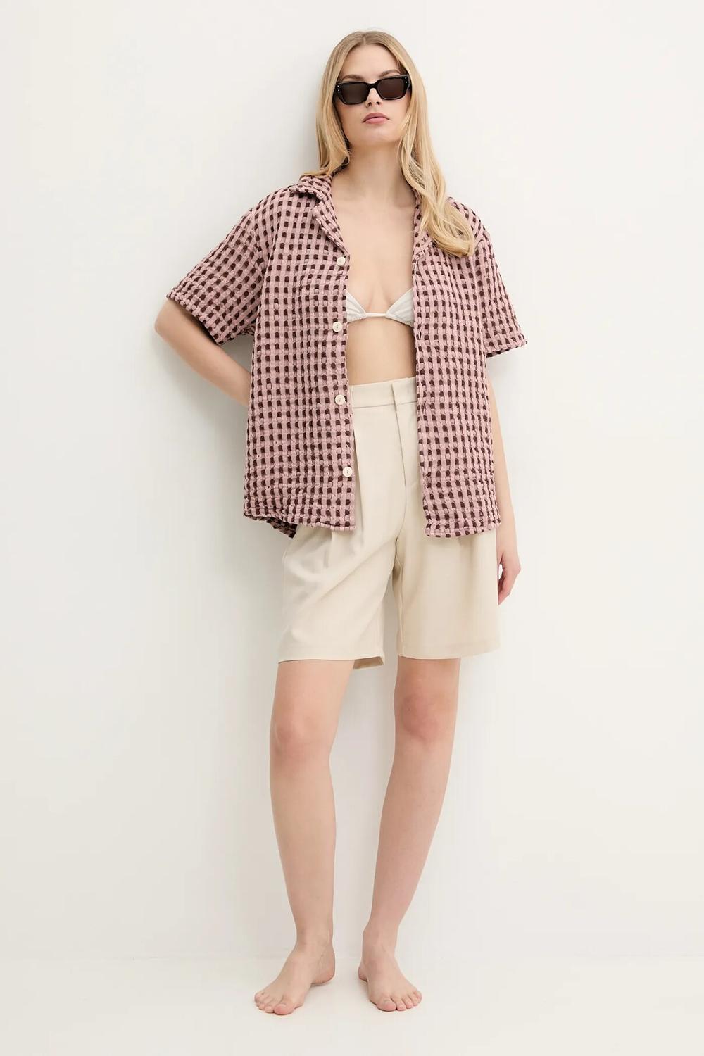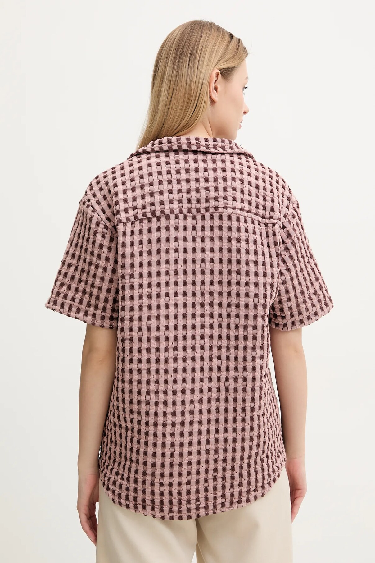 Рубашка из коллекции OAS. Модель выполнена из хлопчатобумажного трикотажа. На нем есть курортный ошейник.