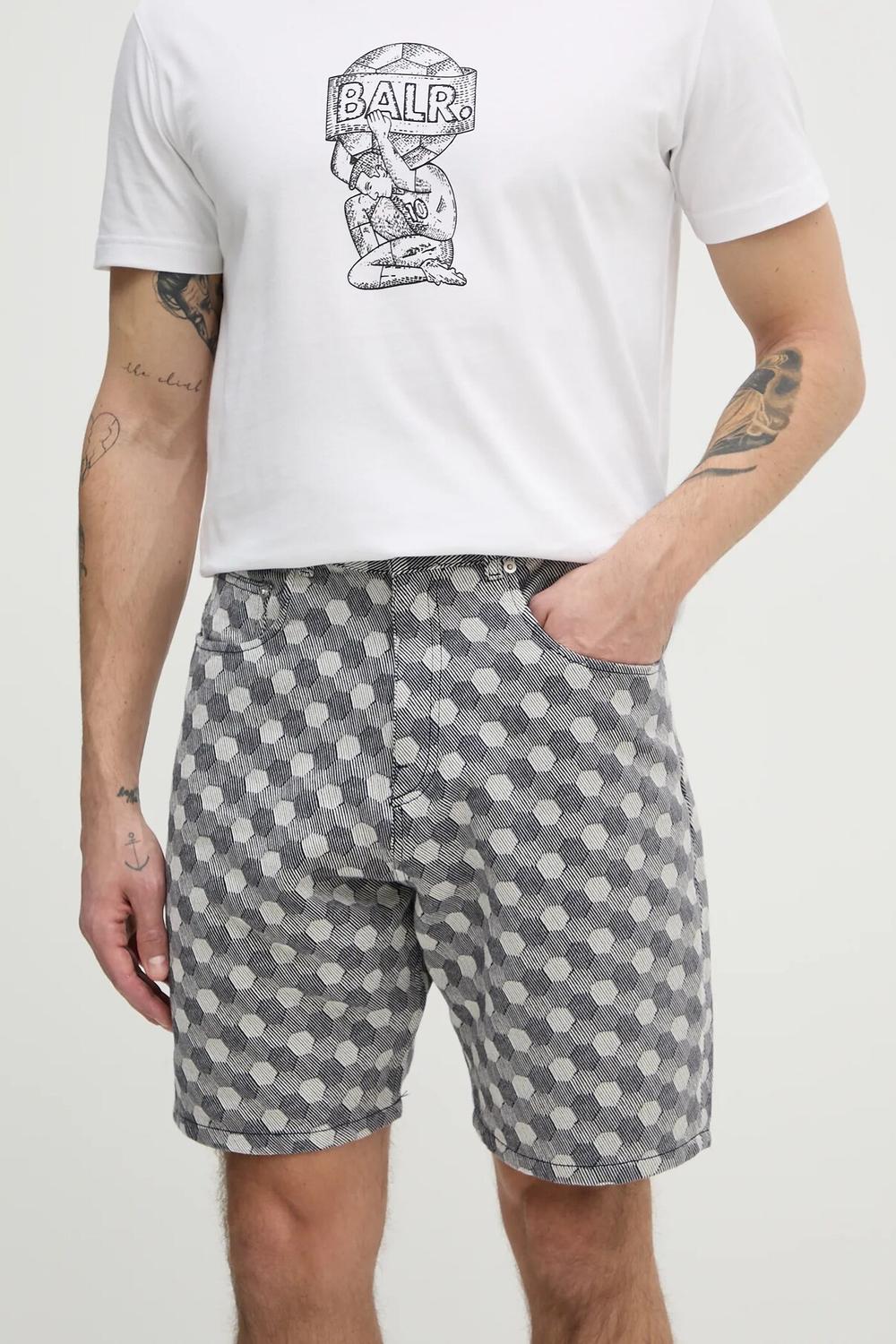 Шорты из коллекции BALR. Изготовлено из узорчатой ​​ткани. Модель изготовлена ​​из жесткого, сохраняющего форму материала.