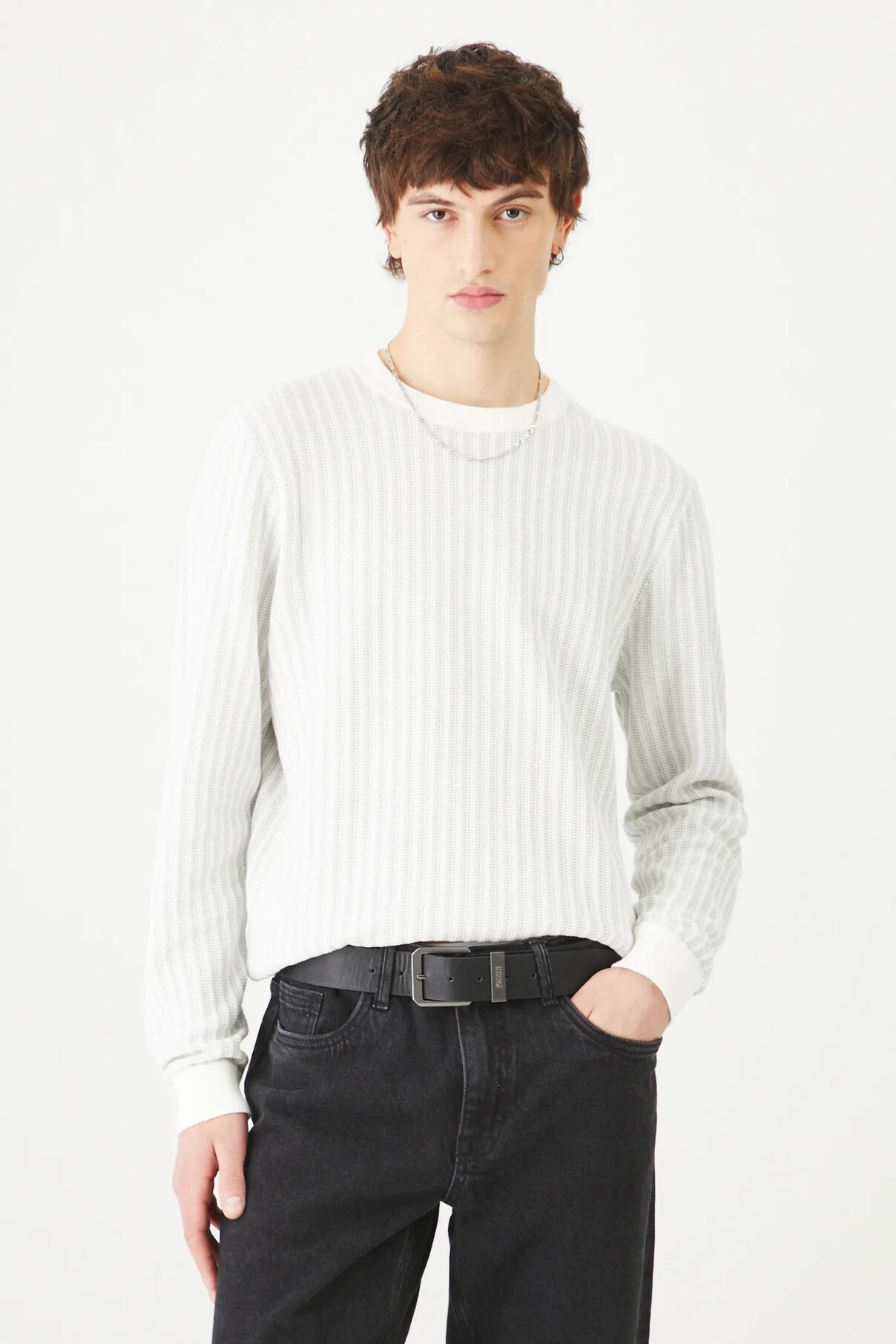 Свитер из коллекции Medicine. Модель с круглым вырезом горловины выполнена из фактурного трикотажного полотна.