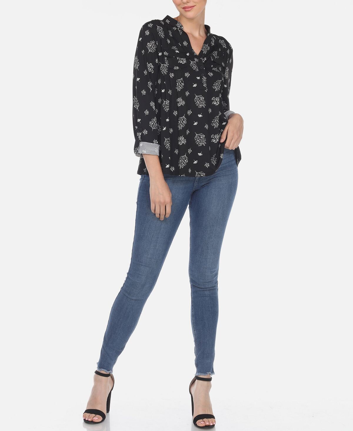 Женская плиссированная блузка с принтом листьев White Mark, черный