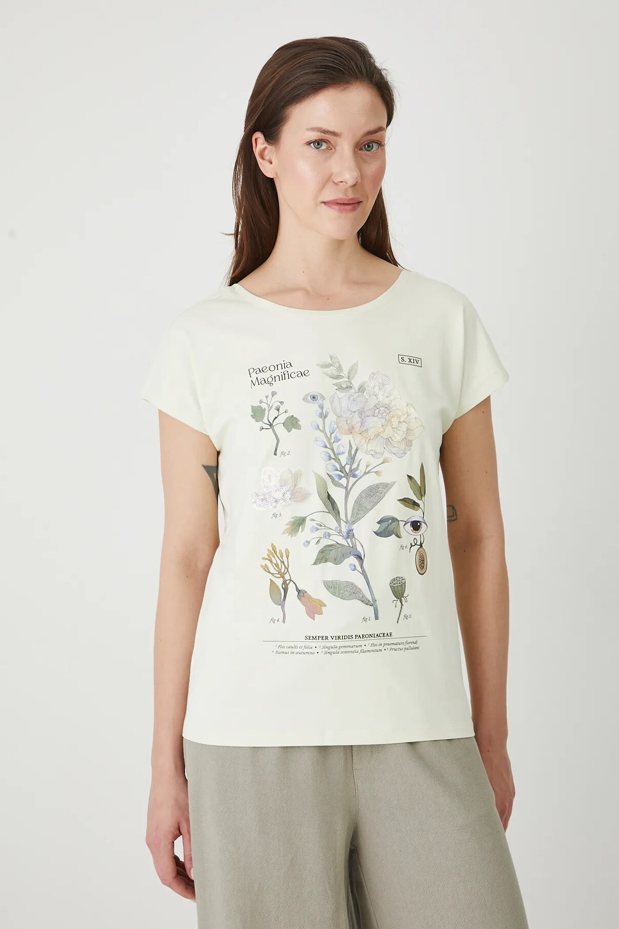 - Принт с растительным мотивом.
