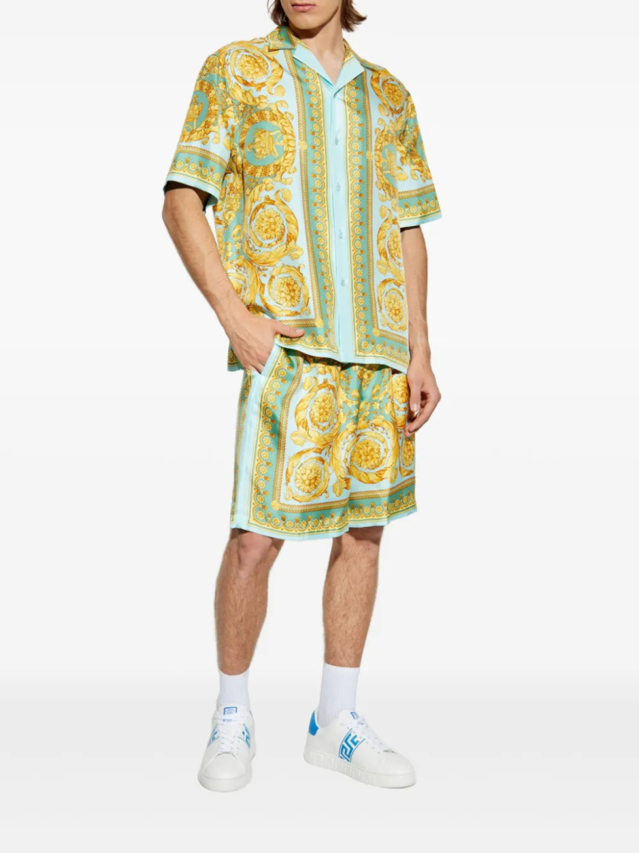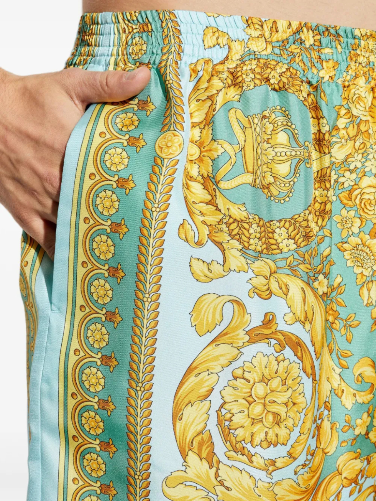 Шорты из шелка с принтом Versace Barocco, зеленый