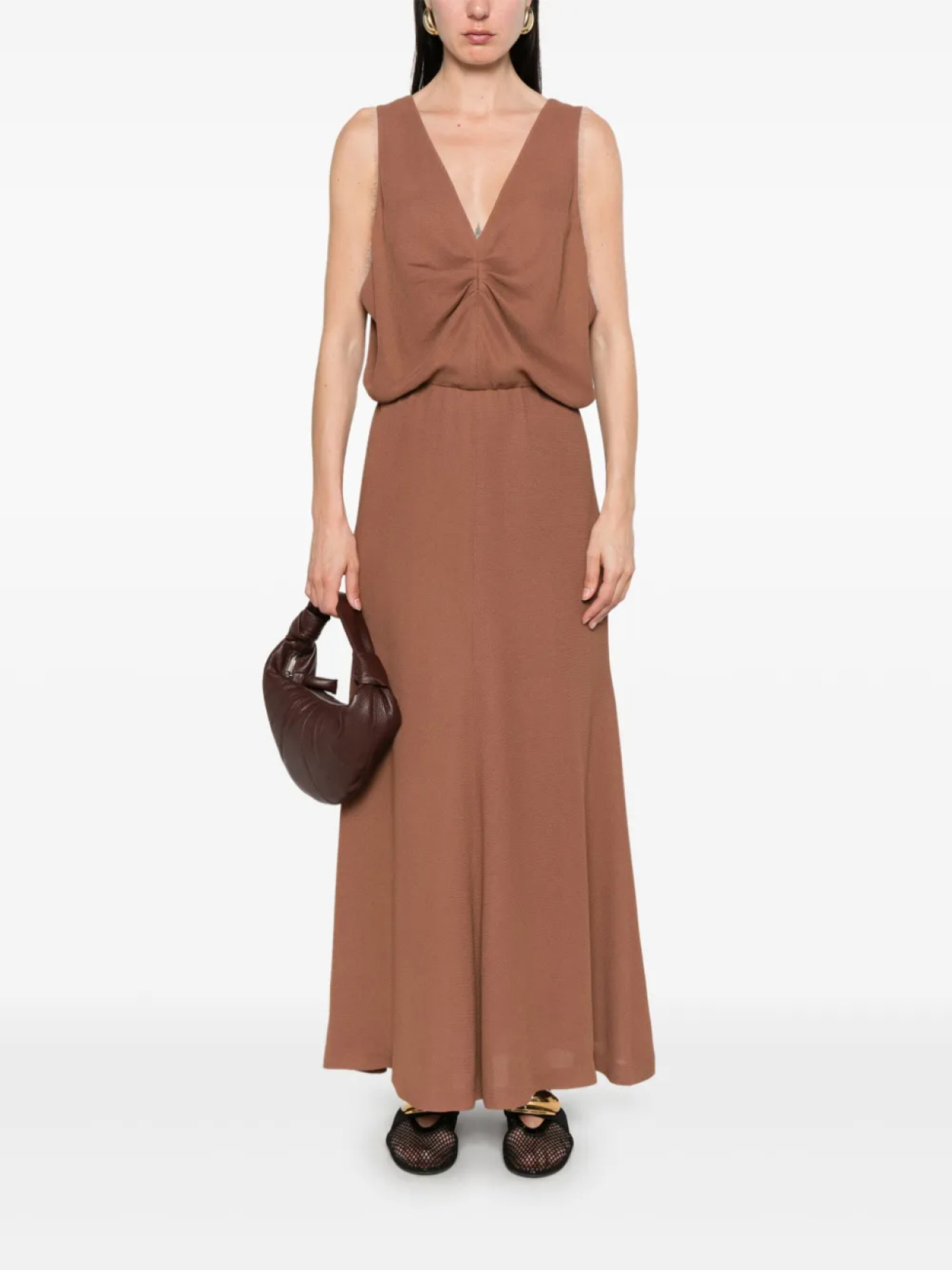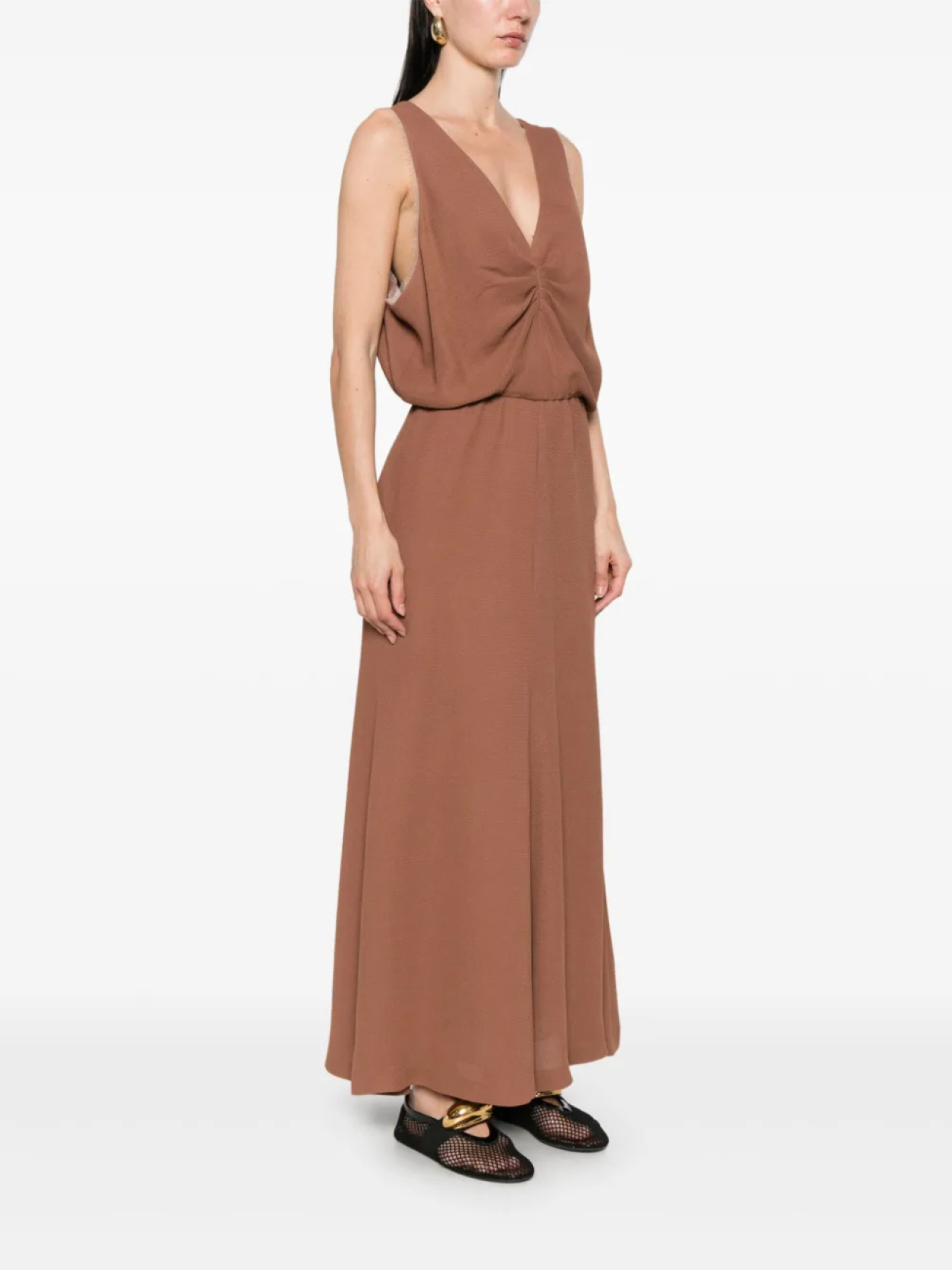 A.M.G. платье миди с V-образным вырезом, коричневый