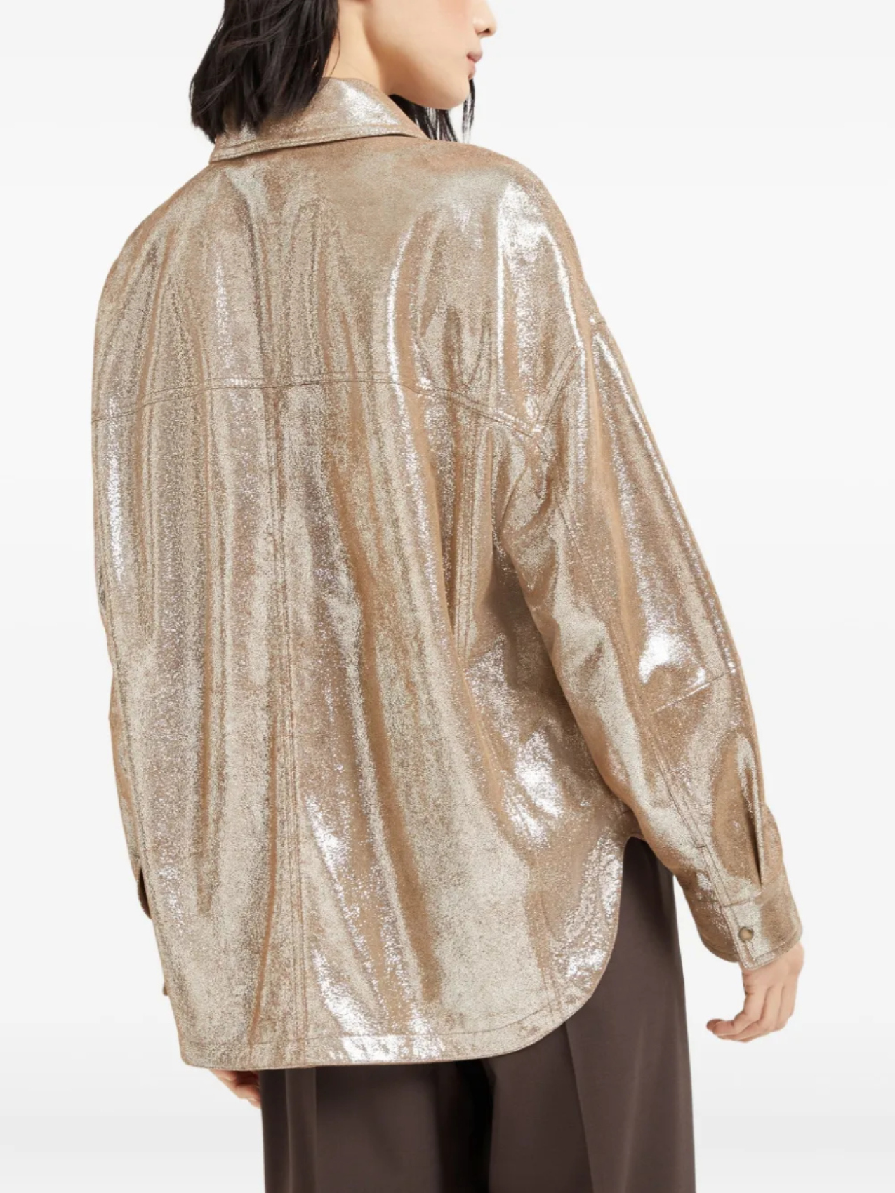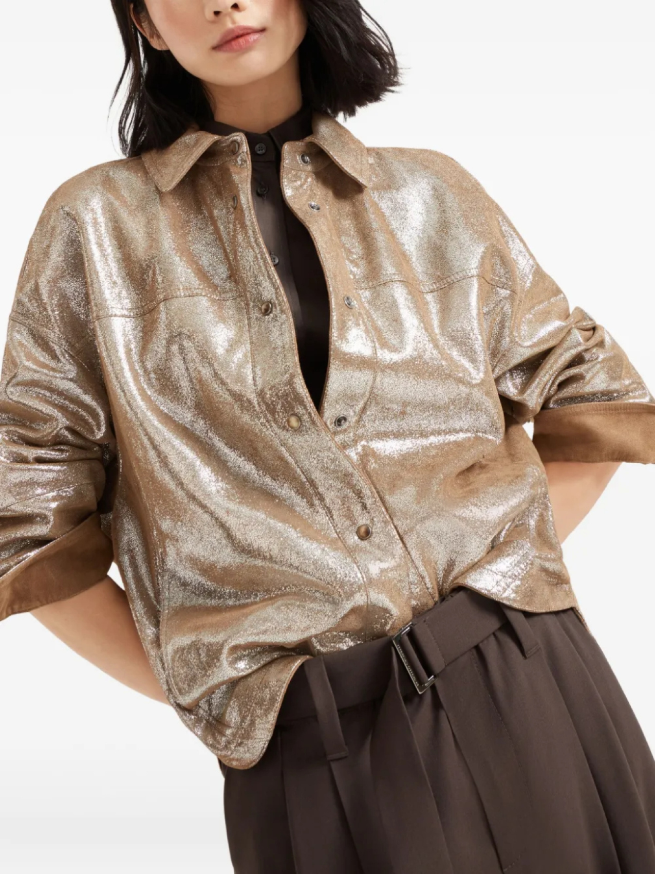 Brunello Cucinelli куртка-рубашка из ткани ламе, золотой