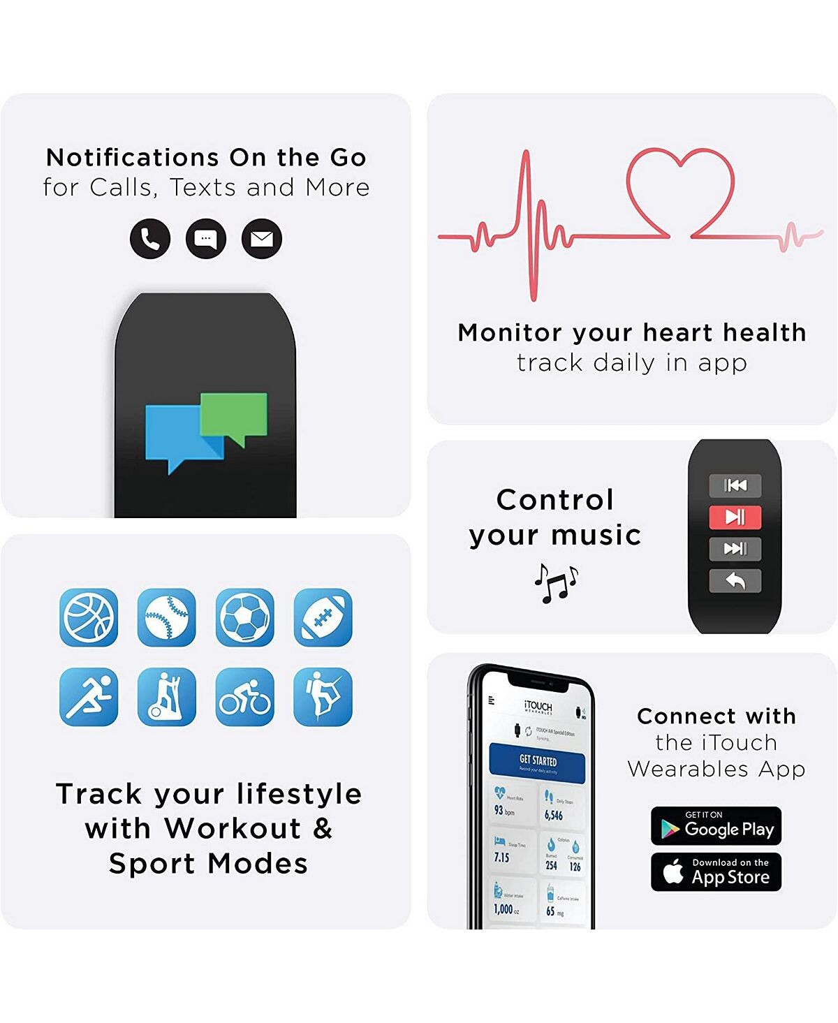 Имеет пульсометр, шагомер, с легкостью отслеживает сожженные калории и остается в курсе уведомлений благодаря множеству функций фитнес-трекера iTouch. Вы можете отслеживать режим сна, индикатор заряда батареи и многое другое — и все это с помощью этих суперстильных умных часов. Модель № 500206B-51-TDP