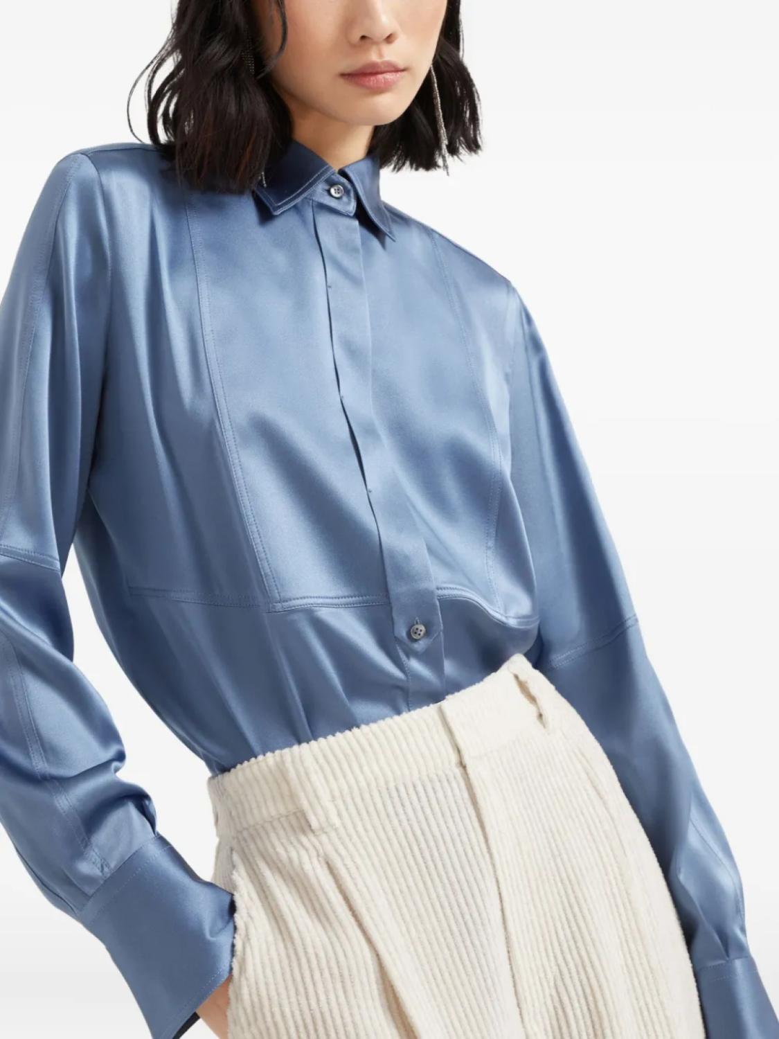 Brunello Cucinelli шелковая рубашка, синий