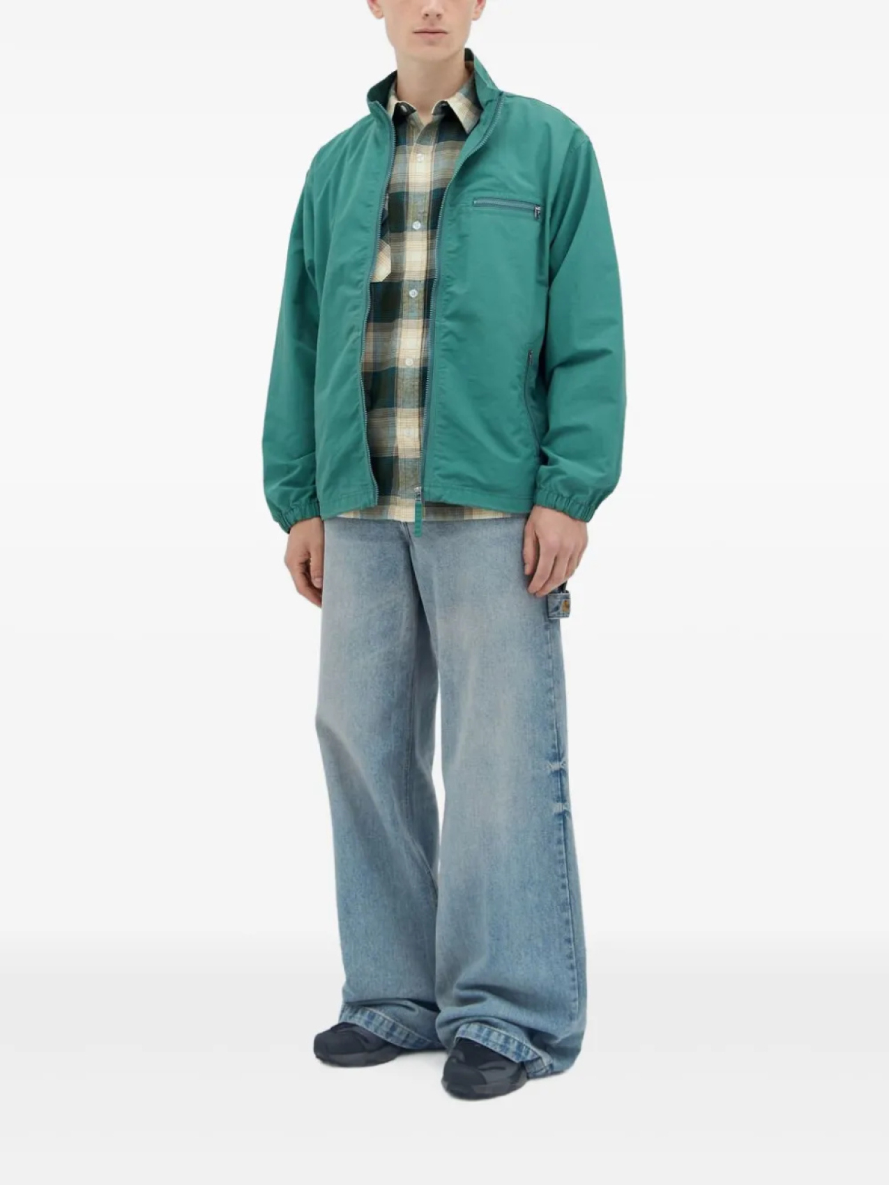 Застежка-молния нефритового цвета спереди, нагрудный карман на молнии, два боковых кармана на молнии, эластичные манжеты