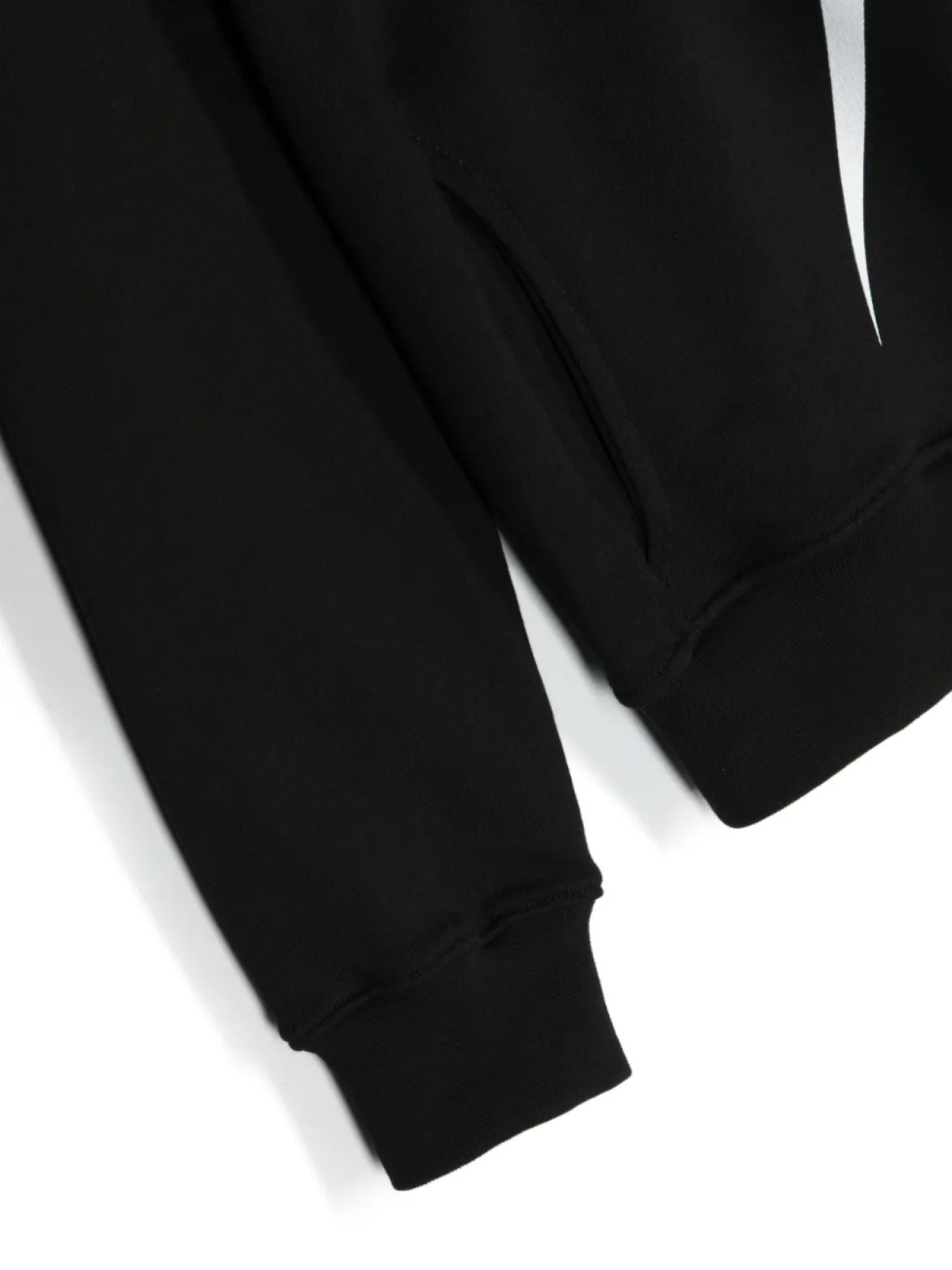 Черный, хлопок, принт Thunderbolt, классический капюшон, длинные рукава, карман-муфта и прямой подол.