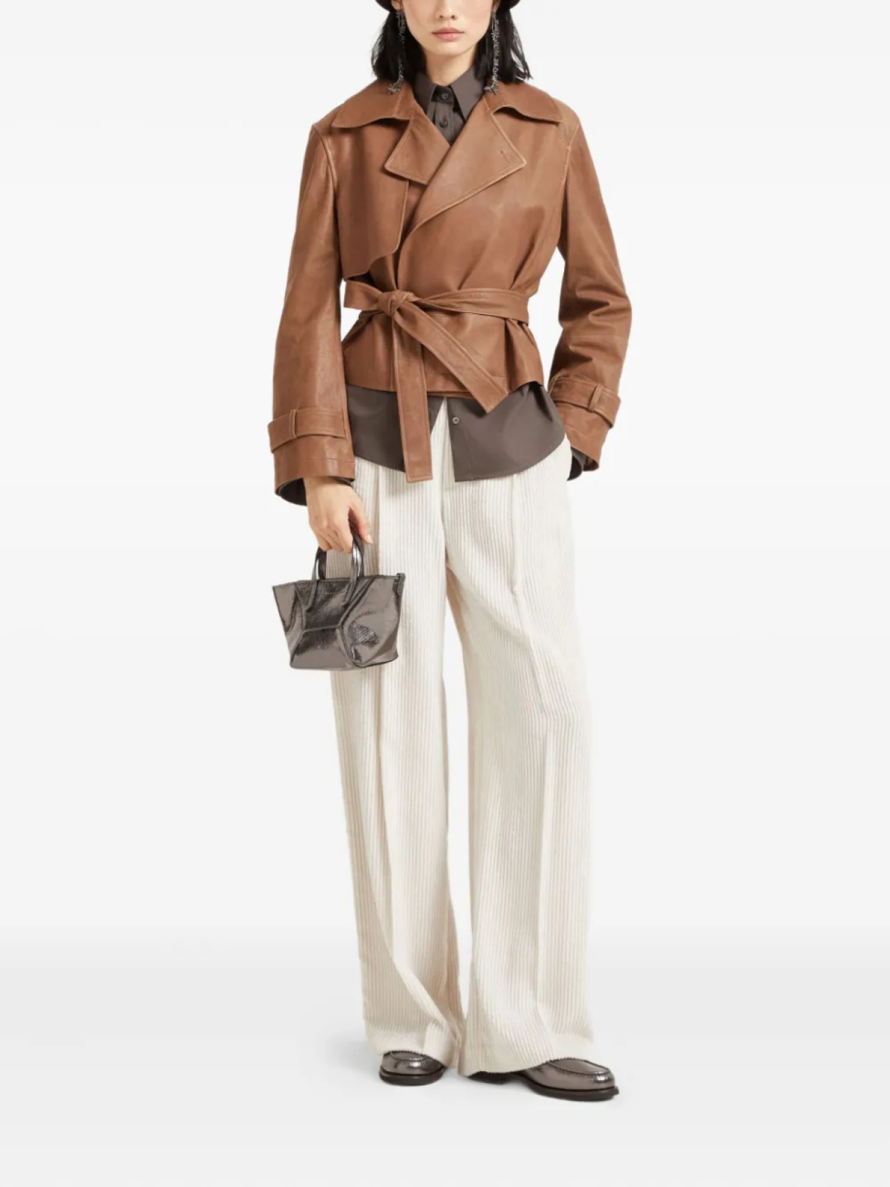 Brunello Cucinelli кожаная куртка на молнии, коричневый