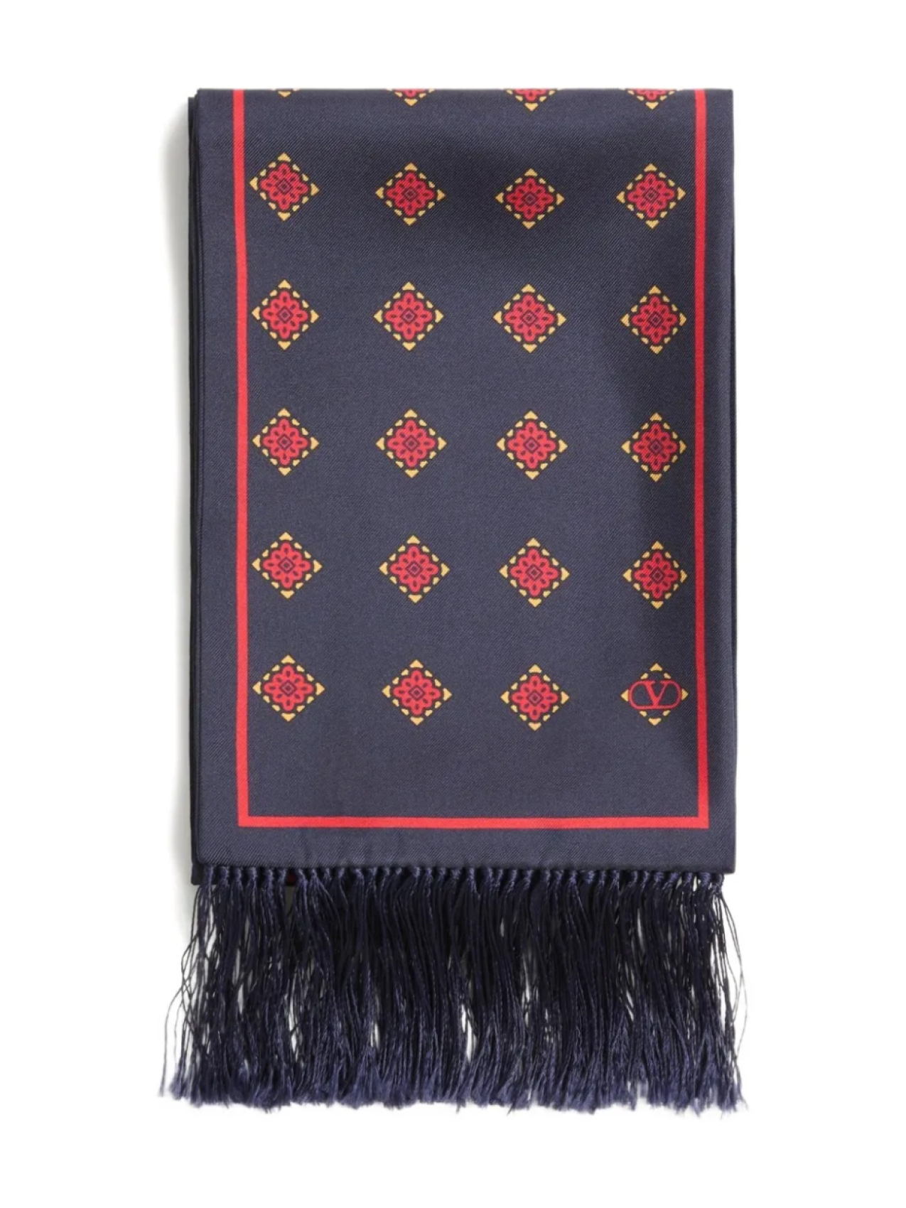 Valentino Garavani OPTICOOL ШЕЛКОВЫЙ ШАРФ-БАНДО С БАХРОМОЙ, синий