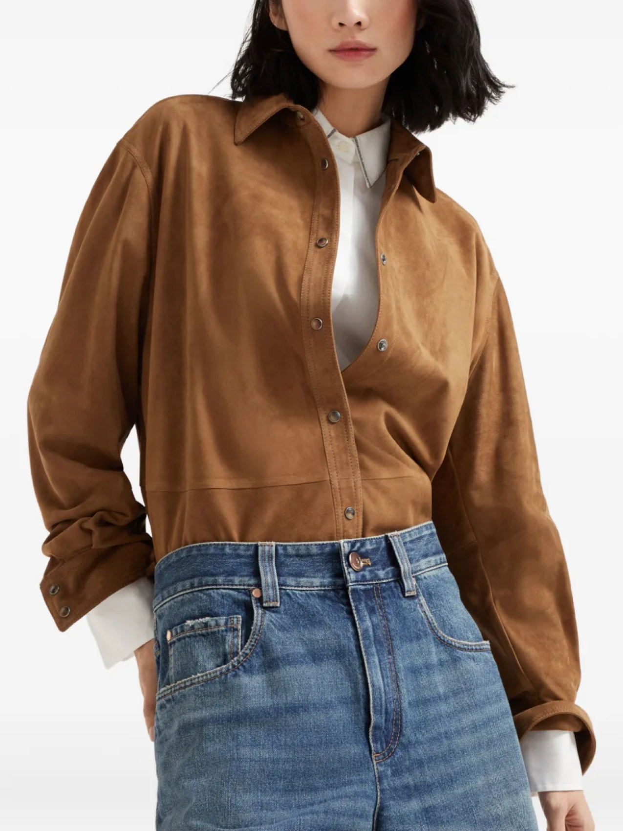 Brunello Cucinelli кожаная рубашка, коричневый 528 612₽