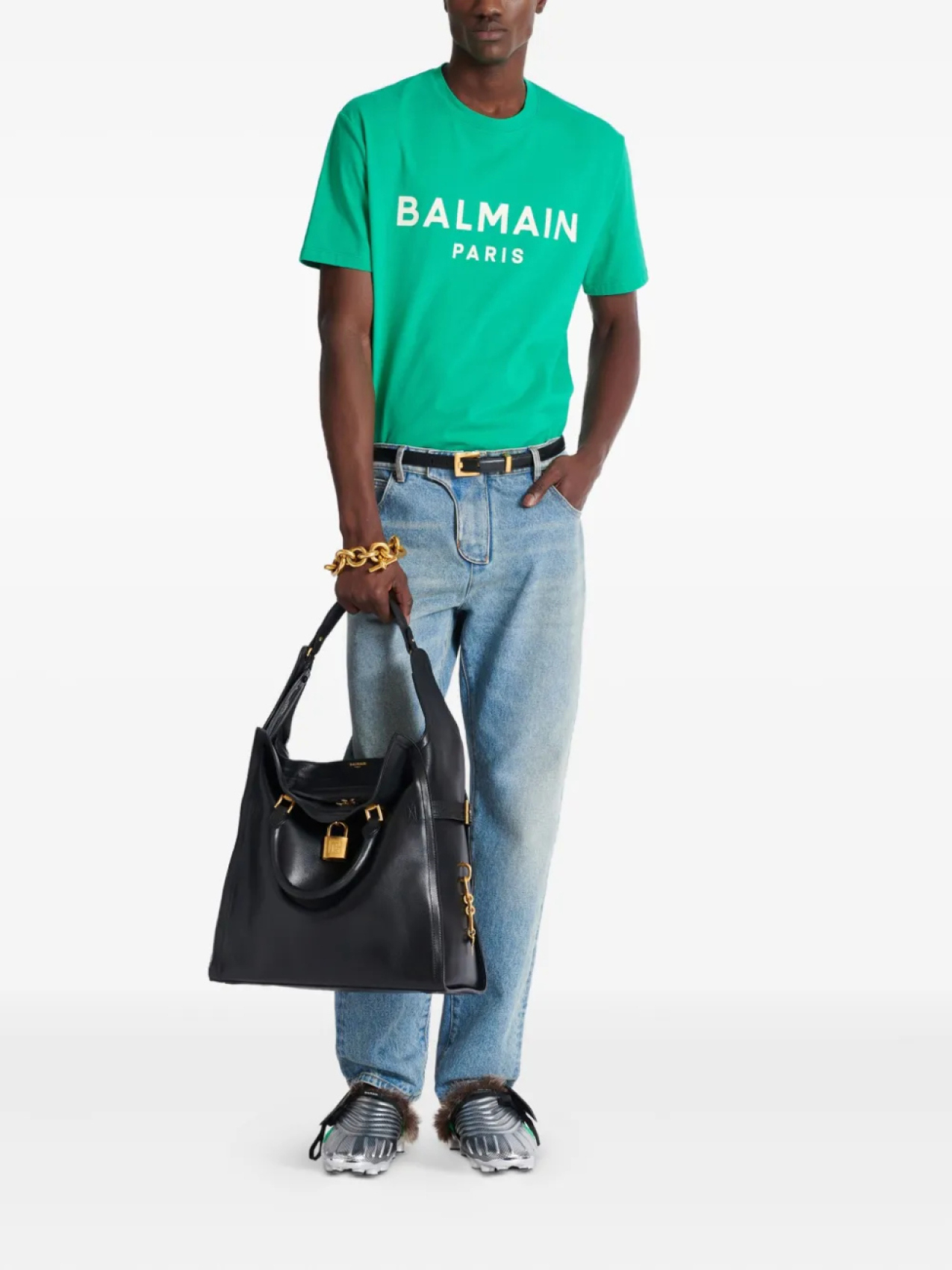 Balmain футболка с логотипом, зеленый