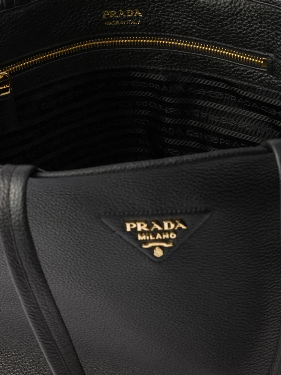 Большая кожаная сумка-тоут Prada, черный