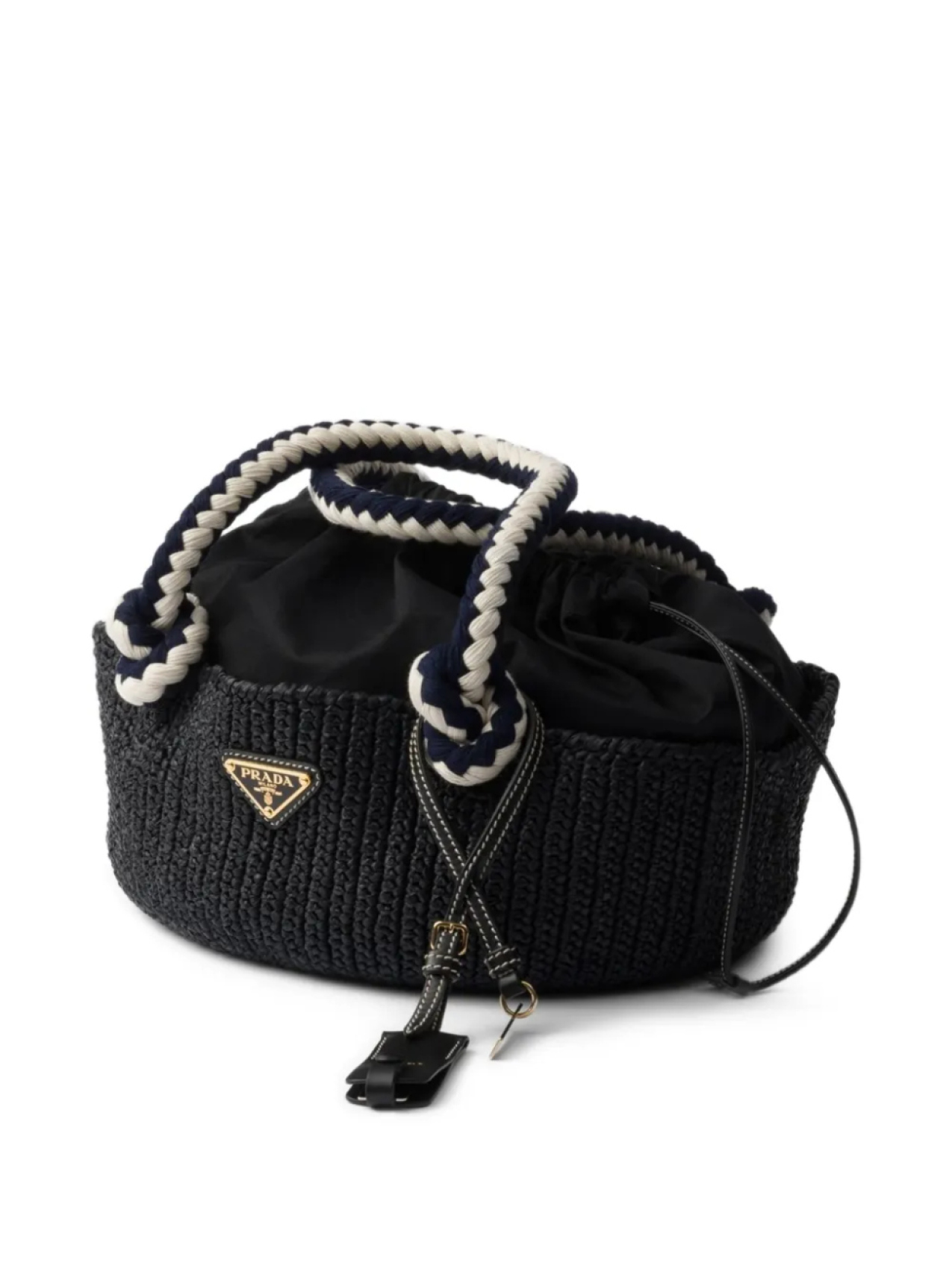 Маленькая сумка-тоут Prada, связанная крючком, черный