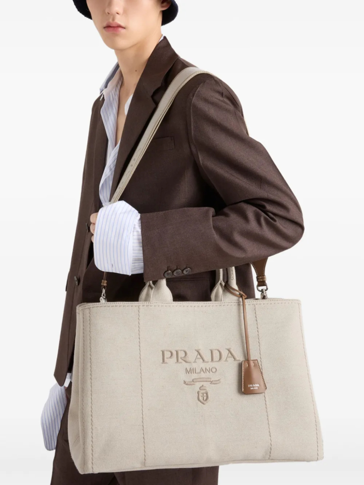 Prada сумка-тоут с вышитым логотипом, нейтральный 268 997₽