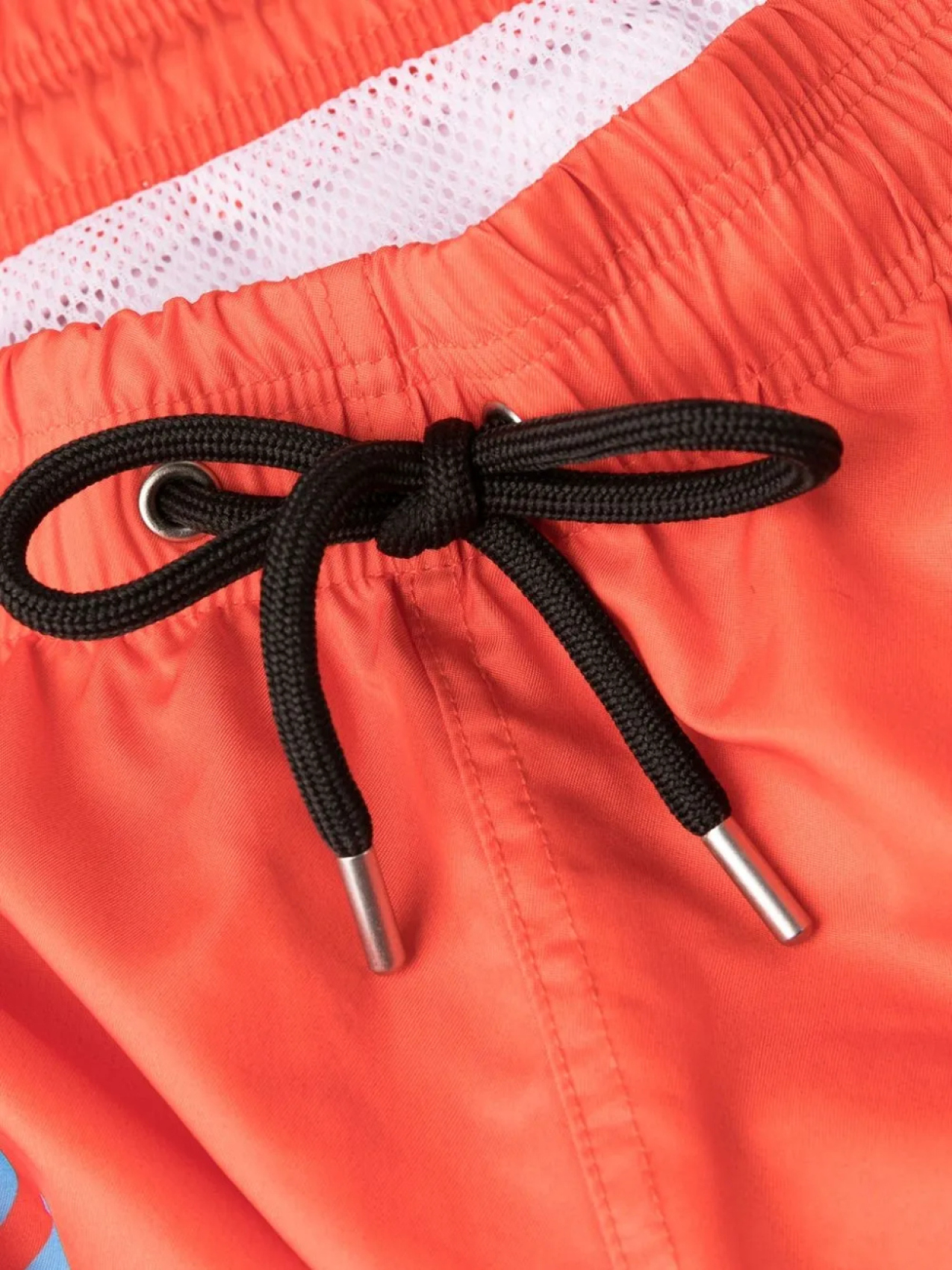 Морковный, хлопок, логотип сбоку, кулиска на талии и прямой крой. Пожалуйста, примеряйте купальники и пляжные шорты только поверх собственного белья.