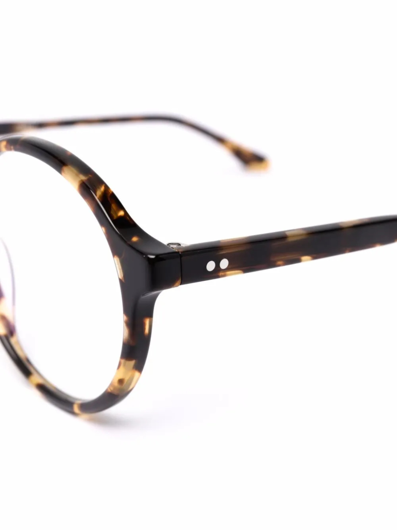 Черепаховая расцветка, прозрачные линзы, круглая оправа, завышенный мост, прямые дужки и дужки с закругленными концами. В комплект входит защитный чехол для очков.