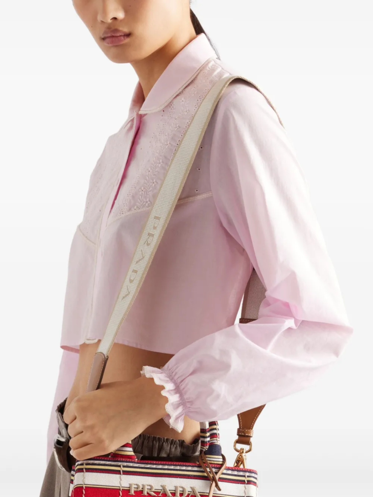 Prada мини-сумка из канваса в полоску, красный 230 542₽