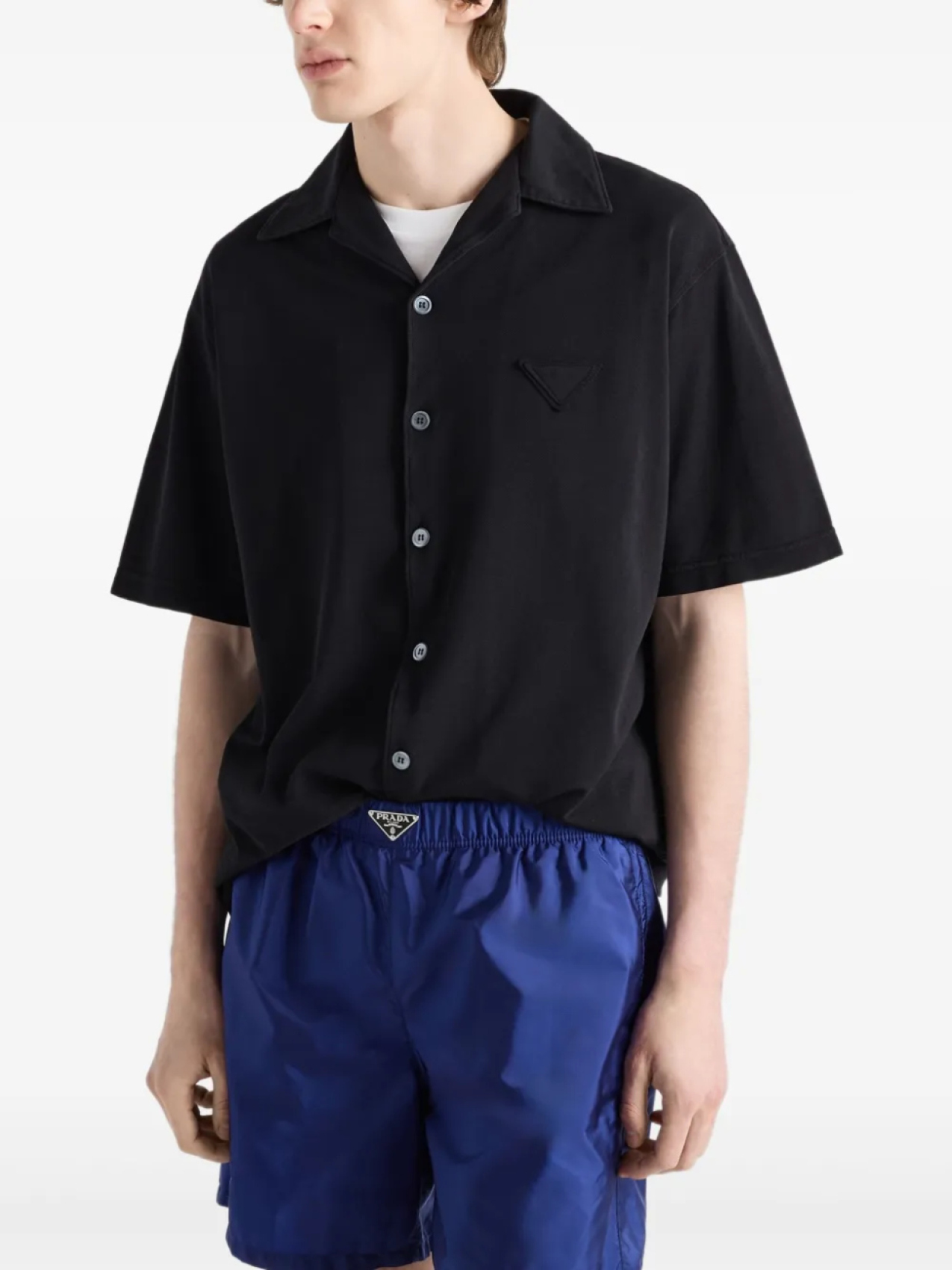 Плавки-шорты Prada с эмалированным треугольным логотипом, синий 63 496₽